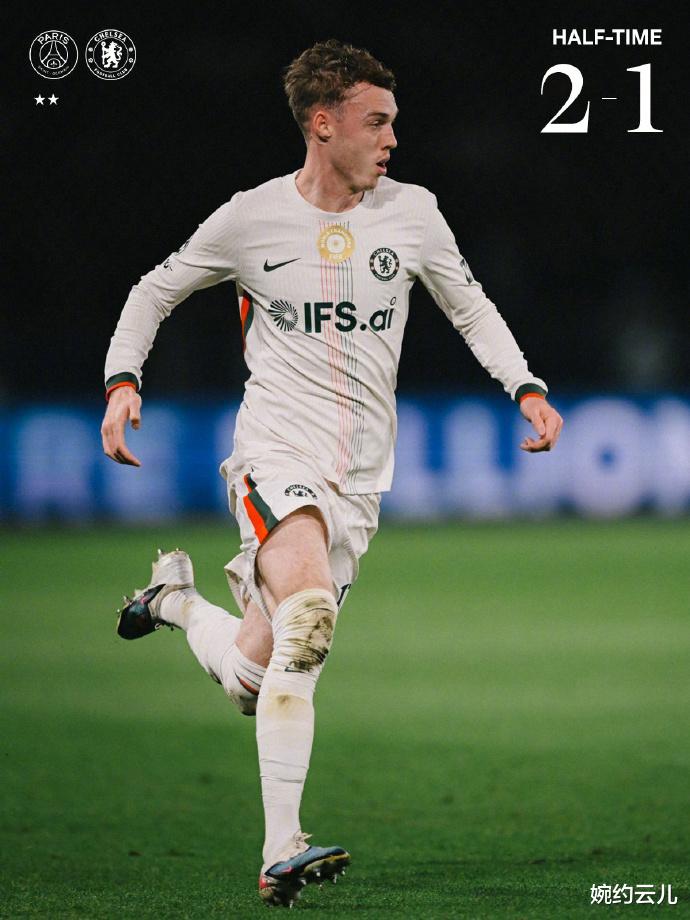 落后的切尔西并未慌乱,凭借恩佐、内托领衔的中场梳理,逐渐稳住阵脚。第28分钟,恩佐前场斜传撕开防线,古斯托前插得球后劲射,皮球被门将扑挡后仍窜入球网,切尔西迅速扳平比分,1-1!蓝军的反击简洁高效,充分利用边路空档,展现出欧冠强队的韧性。