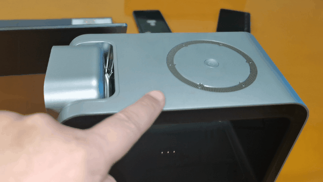 声音方面也是让我满意的设计,内置了6麦克风圆形阵列,支持360°全向拾音,最长拾音距离能达到12米,即使是坐在会议室最角落讲话,远程同事也能听得清清楚楚。而且它搭载了AI降噪技术,能精准过滤掉环境里的噪音,我特意做了个测试:一边用电脑大声播放音乐,一边对着设备讲话,远程那边只能听到我的人声,音乐噪音被过滤得干干净净;就算是会议室外面有人走动、空调吹风,也不会影响收音效果。