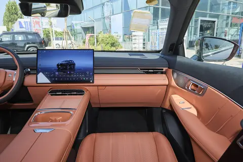 车内的用料也很实在,软包覆盖面积达到了 10.7 平方米,中控台、门板这些经常碰到的地方,用的都是超纤绒感麂皮,摸上去细腻又有质感,完全没有廉价的塑料感。内饰设计是 “豪华游艇” 风格,环抱式的布局让人很有安全感,悬浮中控台和 AR-HUD 搭配在一起,科技感和实用性都兼顾到了。