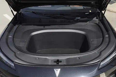 细节上的设计也很戳人。无框车门是个惊喜,开门的时候仪式感拉满,而且关门的声音很厚重,没有廉价的 “哐当” 声。隐藏式电动门把手不仅让车身侧面更简洁,还能降低风阻,我特意查了下,加上溜背式尾翼和流线型车身,这款车的风阻系数在同级别里表现很不错,风阻低了,续航自然也能更实在。