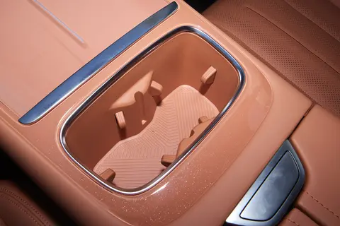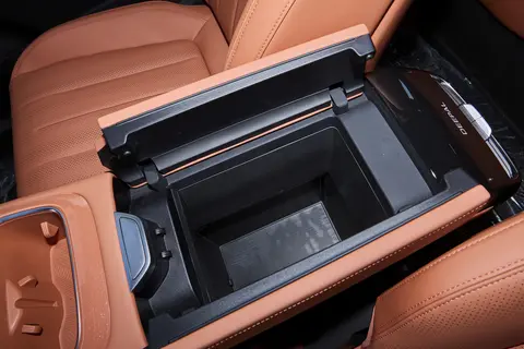 储物空间方面,设计师应该是花了不少心思。隐藏式眼镜盒正好能放下我的太阳镜,不用再到处找地方塞;50W 无线快充特别方便,手机放上去就能充电,再也不用插线了;还有一个 4.7L 的智能冷暖箱,夏天能放饮料,冬天能保温,周末出游的时候特别实用。最让我惊喜的是,后排座椅能纯平放倒,上次帮朋友搬东西,放倒后居然塞下了一个小衣柜,装载能力完全超出预期。