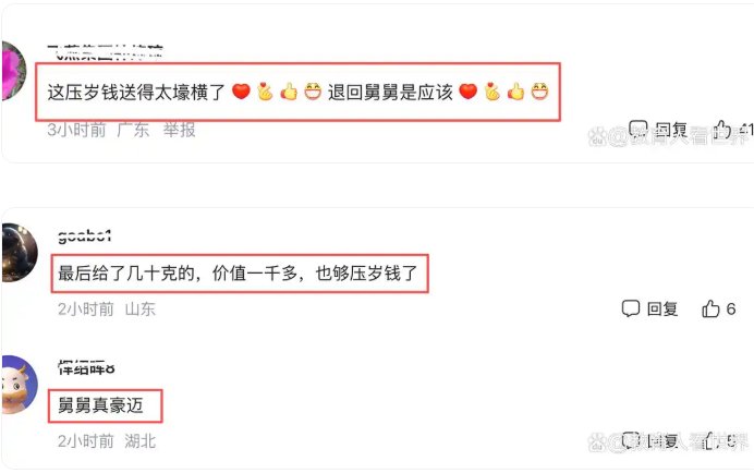 二、后续更显温情:贵重的心意,得体的分寸30斤银砖,30多万。这份压岁钱的“分量”,