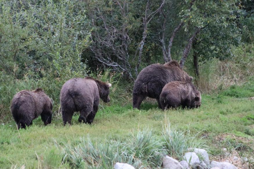 棕熊也如此反常?是的,你没看错!4只棕熊正在一起玩耍、打盹、捕鱼甚至是散步,谁能想象这其实是完全不同的两个家庭。棕熊一般都是独处,尤其是和幼崽之间根本不可能有亲密互动,像这样两个表姐妹一般带着各自的孩子友好携手的场面简直是世所罕见。 棕熊,熊科中分布最广泛的种类,主要分布于亚欧大陆和北美洲。虽然分布广,但是它们的数量在所有熊类中其实并不是很多,不同地方的棕熊个体情况有很大差距。其中最大的要数阿拉斯加棕熊,成年个体体重可达800公斤,站立时候有9英尺,体长2.5米,是世界上现存的最大食肉目动物。 棕熊有着厚厚的皮毛,每到冬天的时候或者遇到敌害的时候,这就是它们的“防身利器”。不可小觑的是,它们虽然体态粗壮肥大,但是头大嘴长,臼齿十分大且发达,咀嚼能力超强。而手上五只锋利的爪子能轻松撕开物体,且利于爬树,这意味着无论是地上跑的,还是树上歇的,亦或是水里游的它们只要盯上了目标,几乎就都能得手。 此次这一“四口大家”在一起玩耍、一起放松简直太不思议,它们其中两只棕熊妈妈分别编号为909和910,都居住在卡特迈国家公园和保护区,连护林员也表示这样的亲密关系太少见了,可以称得上是“年度故事”了。此外,更为惊喜的是不仅出现了罕见的和谐群居,它们还出现了人类般的哺育行为,它们会母熊抓捕鲑鱼,而小熊在河岸边学习观看,这在棕熊这一物种史上都极其罕见。 而十分有幸的是,它们经常出现在公园布鲁克斯瀑布附近,因此喜欢棕熊的忠实观众时常能一睹这一罕见画面。不过棕熊的战斗力可不是人力能挑战的,因此虽然能看到可不要近距离观察哦~