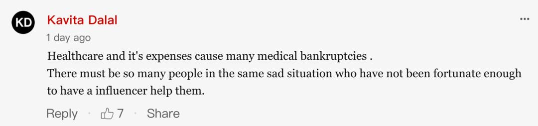 “医疗花销是很多人破产的原因,肯定还有很多人在经历类似的糟糕事情,但却没有像塞缪尔这样的博主能够帮助他们。”