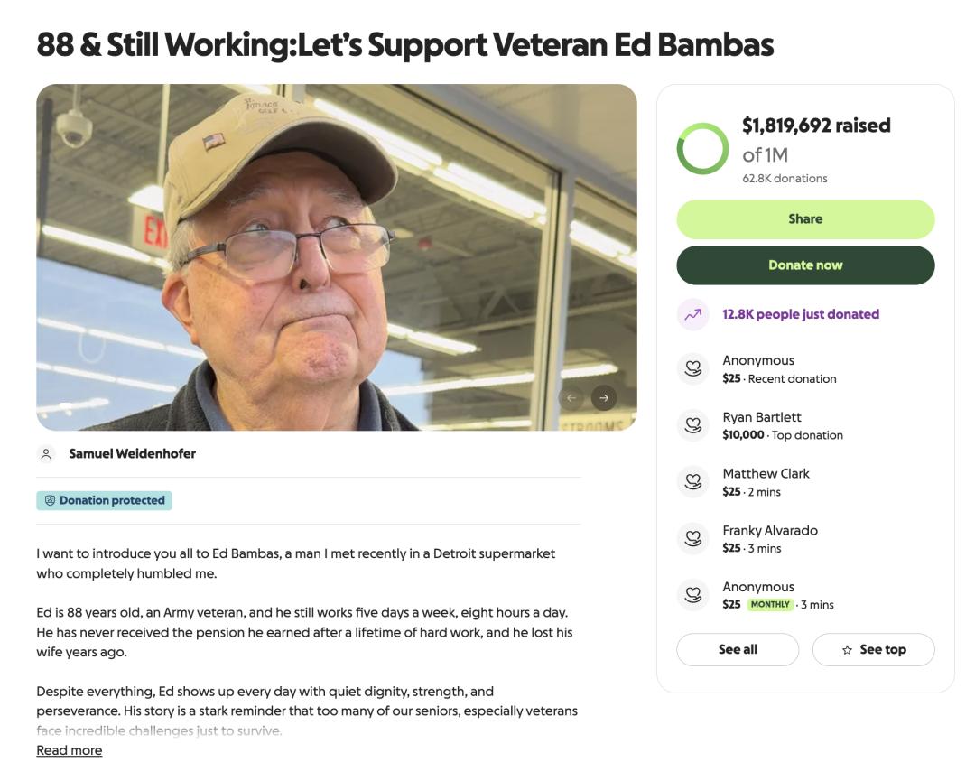 超180万美元的捐款,一位88岁失去妻子和退休金的汽车工人,这几天一个暖心故事感动了许多美国网友。