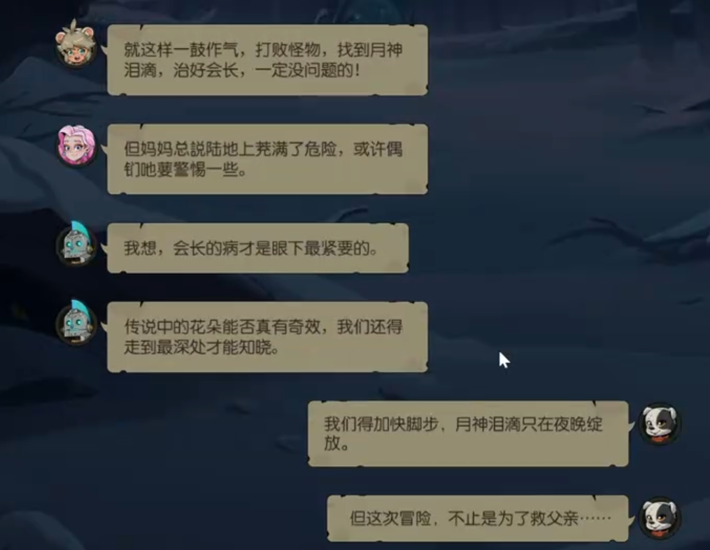 通过冒险我们会逐渐了解游戏的故事剧情,只会在夜晚绽放的月神泪滴,狗头人父亲的病……剧情层层递进,我们需要逐渐揭开隐藏在这里的重重迷雾,才能获取最终的奖励,同时游戏内还拥有不同梯度难度的选择,作为一个新手玩家大概需要几天的时间就能通关,但是不同角色对于卡牌BD的搭配有延伸出无数趣味的玩法,在反复游玩之后更有不同的感受。