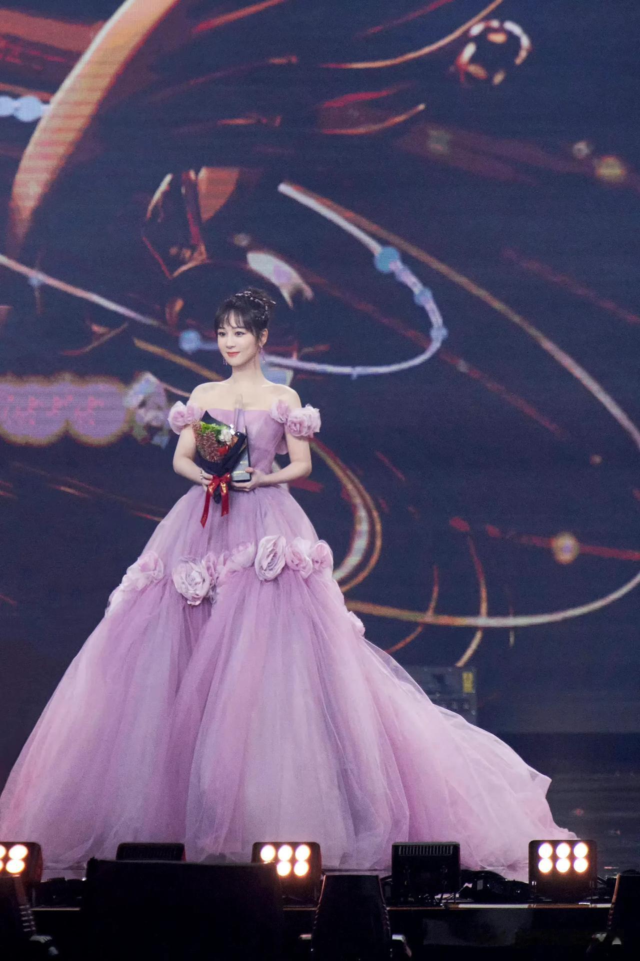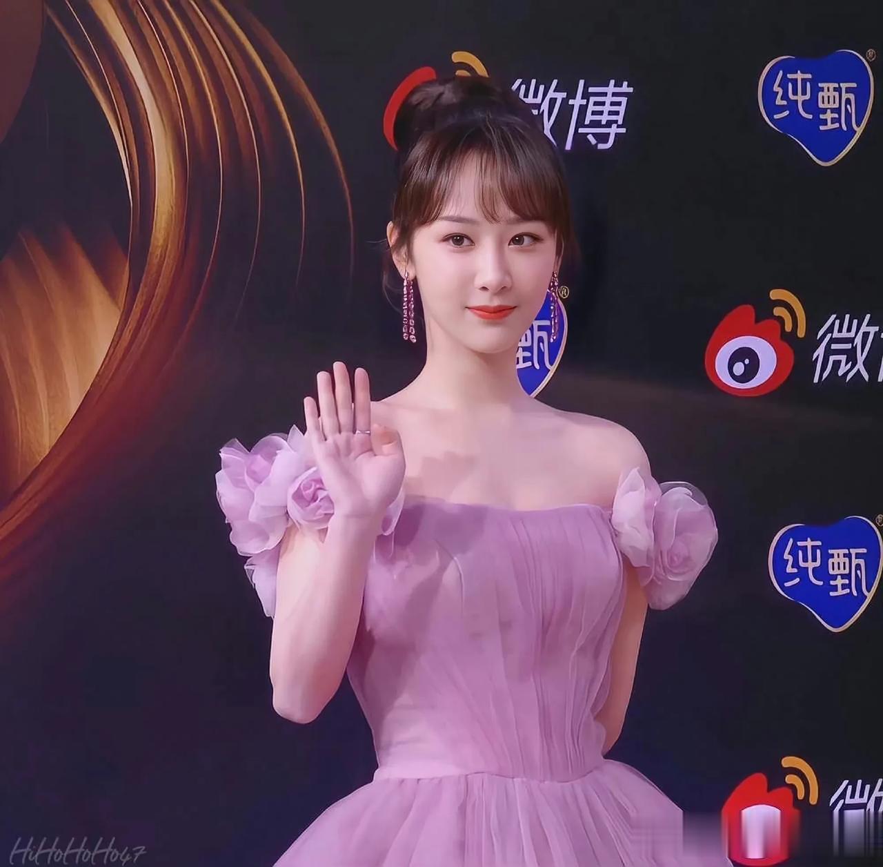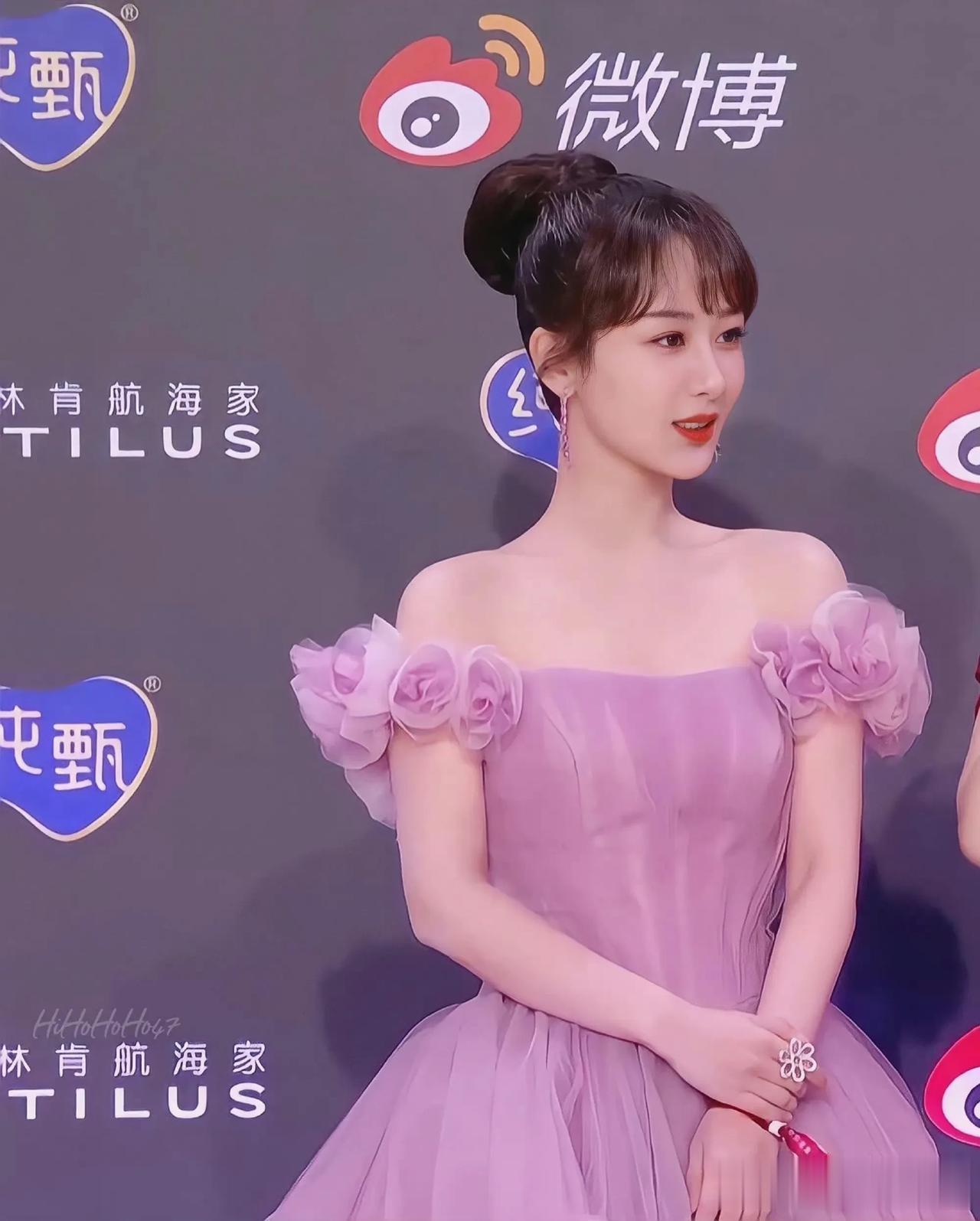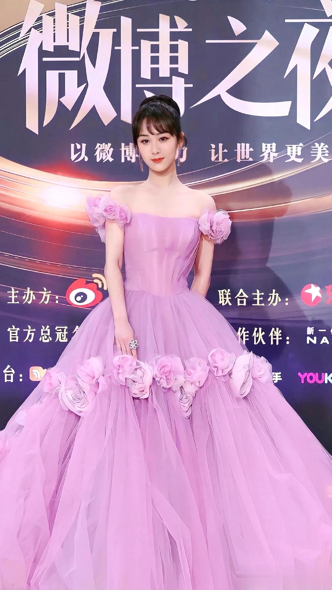 这是杨紫历届微博之夜最好看的一个造型了吧!虽然还是一字肩礼服,但是这个礼服裙无论是颜色还是样式都特别适合她! 杨紫脖颈修长,肩胛线很完美,这就是杨紫的优势所在,所以,一字肩礼服是适合杨紫的。当时这个造型出来的时候简直美的让人移不开眼。裙子袖口是花朵的设计,很别致,和裙身的花朵设计相呼应,轻柔的紫色薄纱,唯美高贵又浪漫,不得不说,紫色很适合杨紫了! 而且这个造型不止礼服选的成功,就是发型和妆容都很成功!杨紫的丸子头以及长耳环的佩戴,也是一个亮点,整体妆造上多了一份高贵气质。这是杨紫很完美的一个造型了!希望今年的微博之夜还是要不负众望奥。