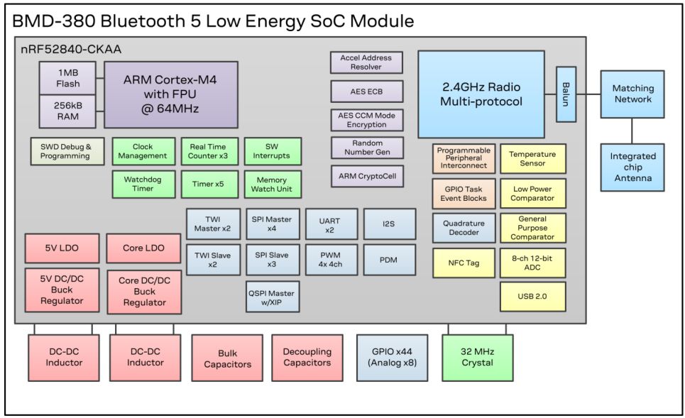• 基于nRF52840系统级芯片(SoC)