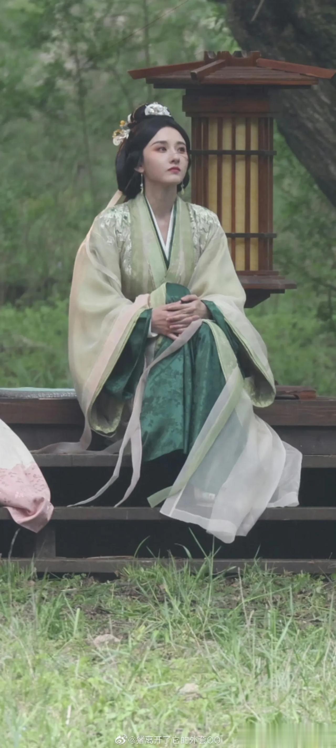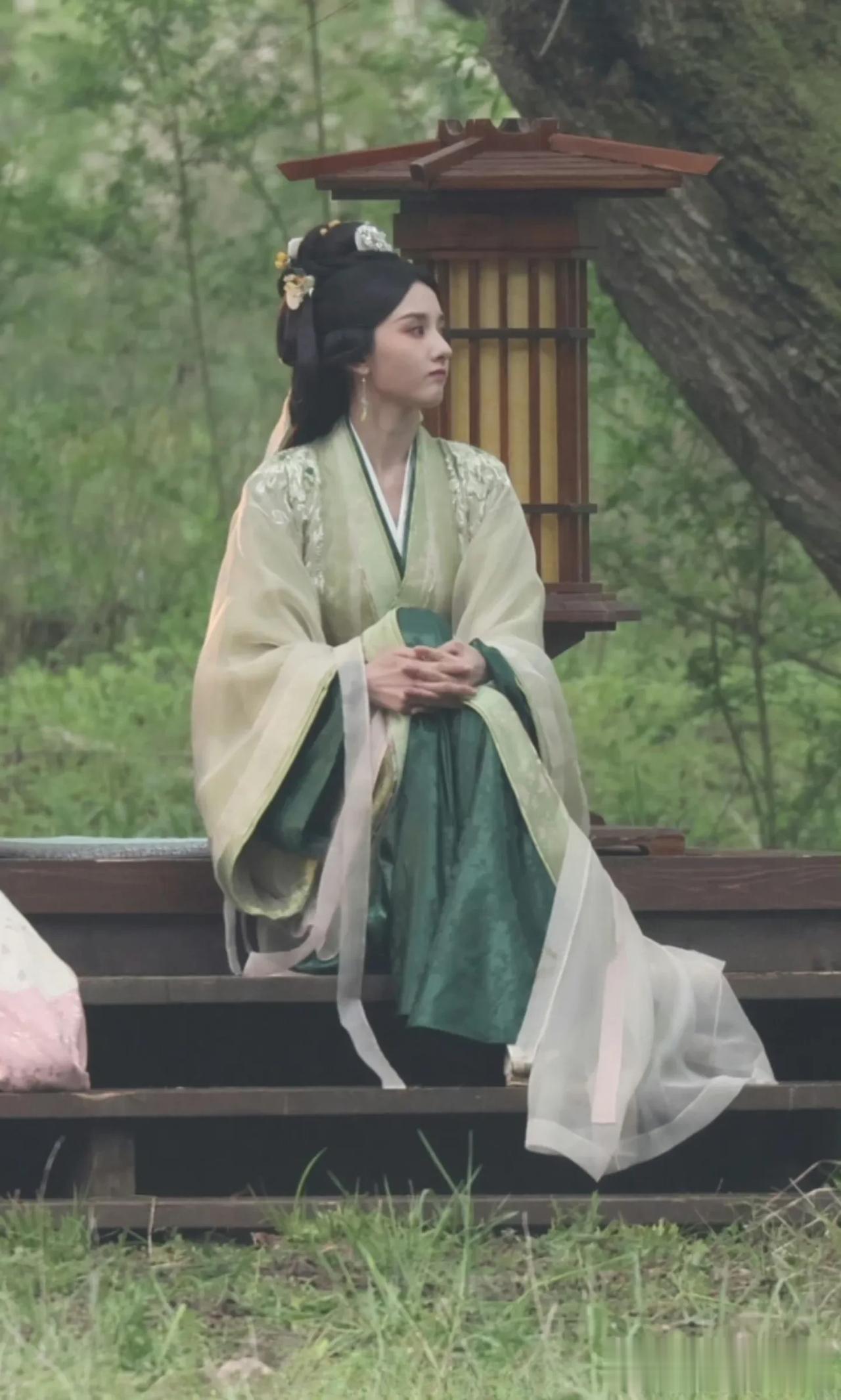 宋祖儿这个绿色古装造型真的出圈了,清淡恬雅,仙气十足,完全匹配书里小乔的美貌呢,氛围感拉满了! 我总觉得她像年轻时候的张柏芝,整个五官是向上的,很舒展!特别是《折腰》中的古装造型,这次真的是出圈了,在这张路透照中,宋祖儿展现出了她清新淡雅、稳重大气的一面,让人不禁为她的演技和造型点赞。
