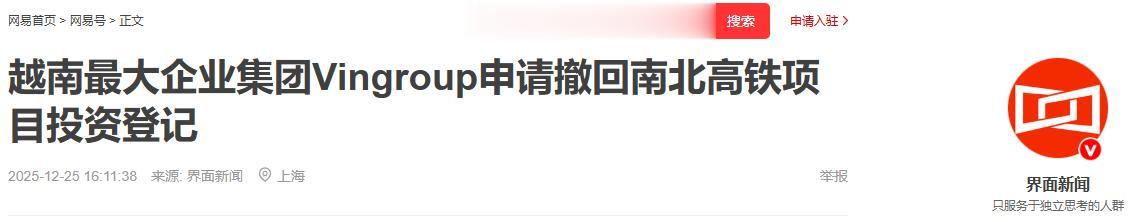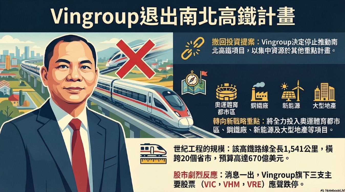 12月25日,越南首富范日旺的Vingroup集团,突然宣布撤回对南北高铁项目的投资意向。
