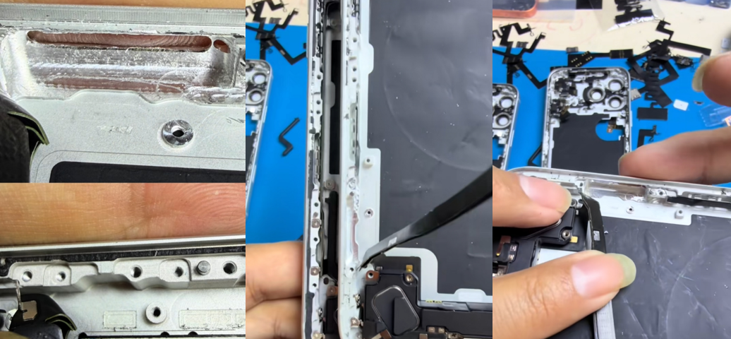 原因就是被打孔机破防了!前面说到,传统的开孔改卡基本一把刀即可,长远改卡17PM方案需要多把刀,不仅仅要从外部打孔,内部也是需要在边框位置做切割,方便留出空间安装定制卡槽,这就带来了问题,华强北很多的打孔机要为“长远改卡17PM完美方案”设置参数。