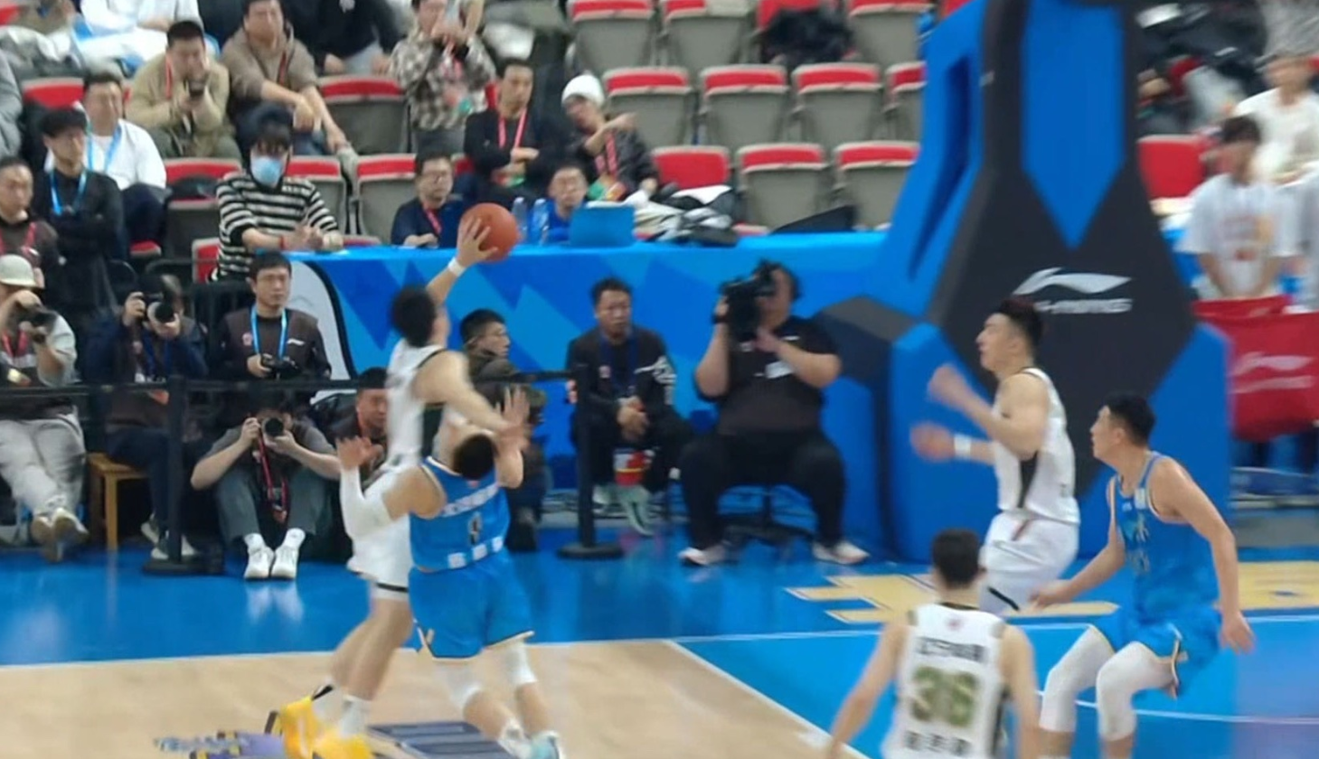 比赛的转折点,发生在第三节比赛,当时姜宇星和陈盈骏在左侧45度去争抢这个篮板球,姜宇星的右臂打到了陈盈骏的脸部,刚看身边裁判的手势,好像是陈盈骏夹臂犯规,不料最终的结果却是姜宇星犯规!