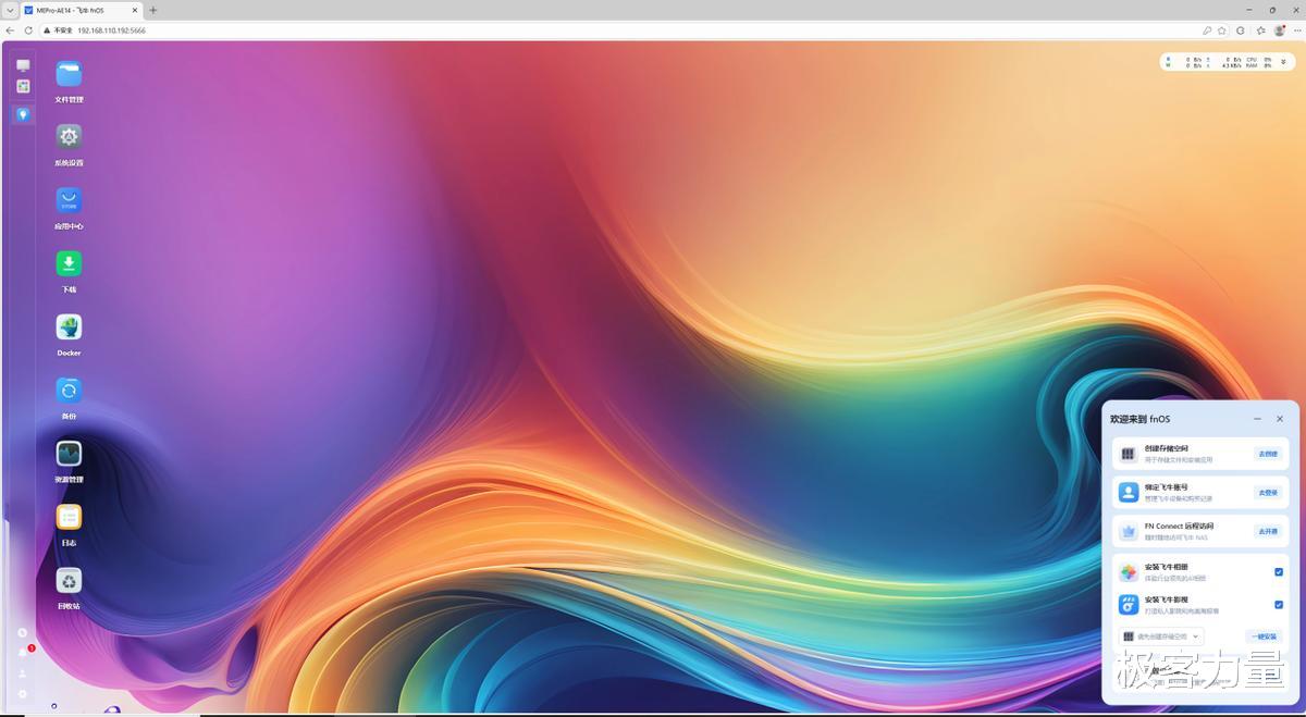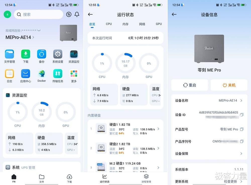 零刻ME Pro提供无硬盘无系统版和飞牛商业版系统版,我入手的是后者,自带128GB系统盘和预装的飞牛fnOS,还赠送了5年的飞牛高级会员,性价比直接拉满。而且这款基于Linux深度定制的系统,把专业性和易用性平衡得很好,UI界面清爽直观,文件管理、影视相册、备份同步等常用功能都在主页一目了然,完全不用像传统NAS那样记复杂的操作指令。