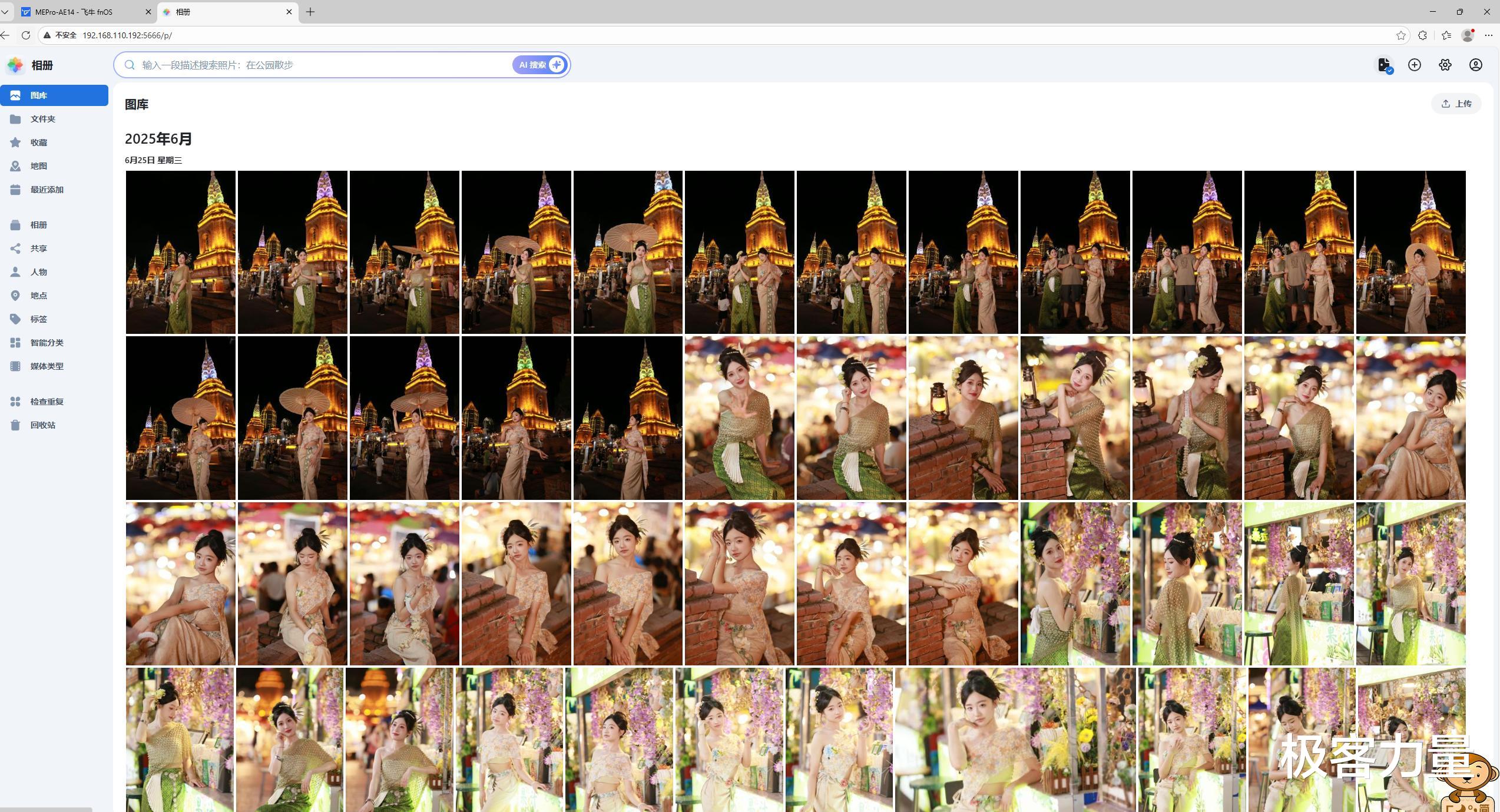 普通NAS存照片就是单纯的 “数据堆砌”,几千张照片堆在一起,想找一张几年前的老照片堪比大海捞针。而零刻ME Pro的AI相册彻底解决了这个问题,把“存照片”升级成了“管照片”。