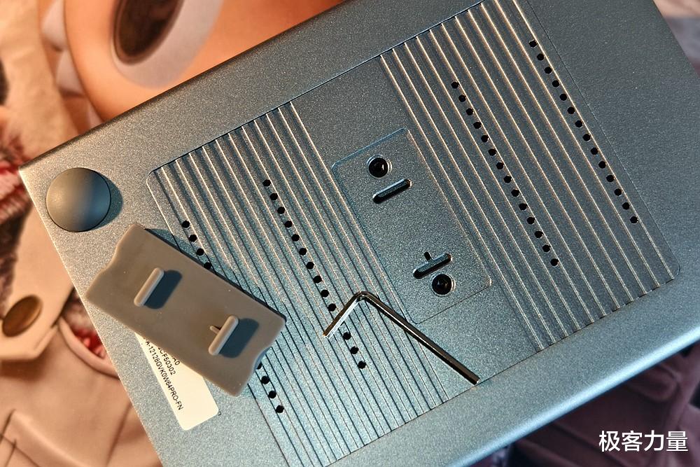 细节设计也很贴心,机身正面预留了一个10Gbps的USB-A接口,平时插移动硬盘传文件不用绕到机身背面,随插随传特别方便。底部的橡胶垫不仅能防滑,还巧妙隐藏了拆卸工具,不用额外找螺丝刀,拆机扩容省时省力,这种人性化设计真的让人好感倍增。