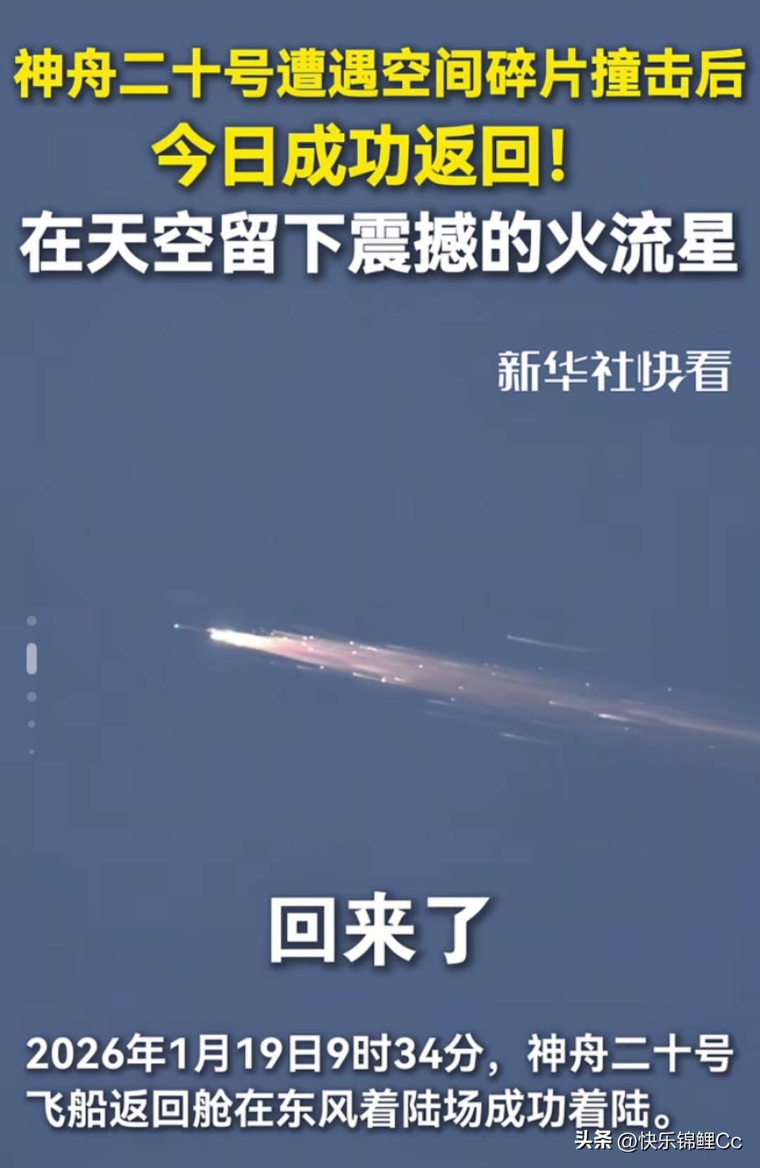 最先被翻出来反复咀嚼的,就是那块传说中“带伤作战”的舷窗。去年底有新闻曝出:在轨运行期间,神舟二十号舷窗外层被太空微小碎片击出裂纹。你说巧不巧,正赶上这次返航,网友们的担心也随之拉满:高温烧蚀、等离子体包裹、裂纹会不会直接炸开?