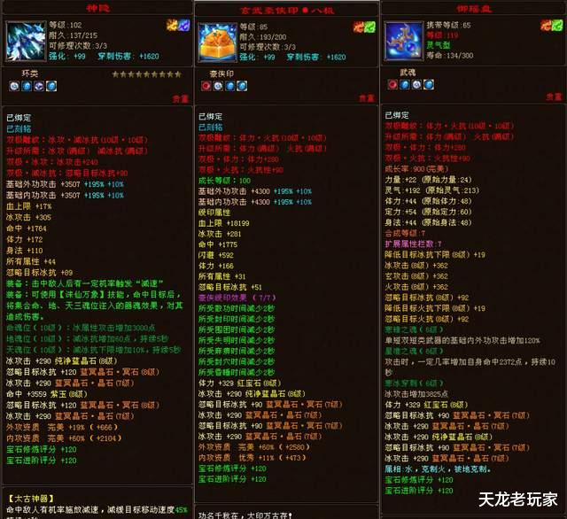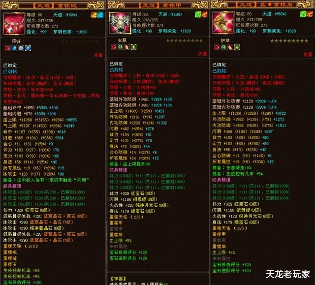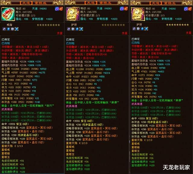 这个号绝大部分手工都是自制的,尤其是还有一件九星戒指:冰玄双属性、内功攻击、命中、体力、身法和所有属性。