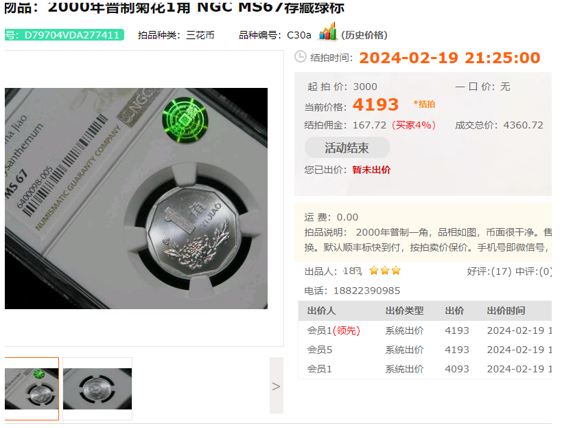 2000年和老三花硬分币组成套装,只发行了32万枚,其中30万枚普制币,2万枚精制币,发行量非常少,特别稀少的原因,热度是越来越高,尤其是高分绝品的评级币,更是屡屡有拍出好几千的记录。
