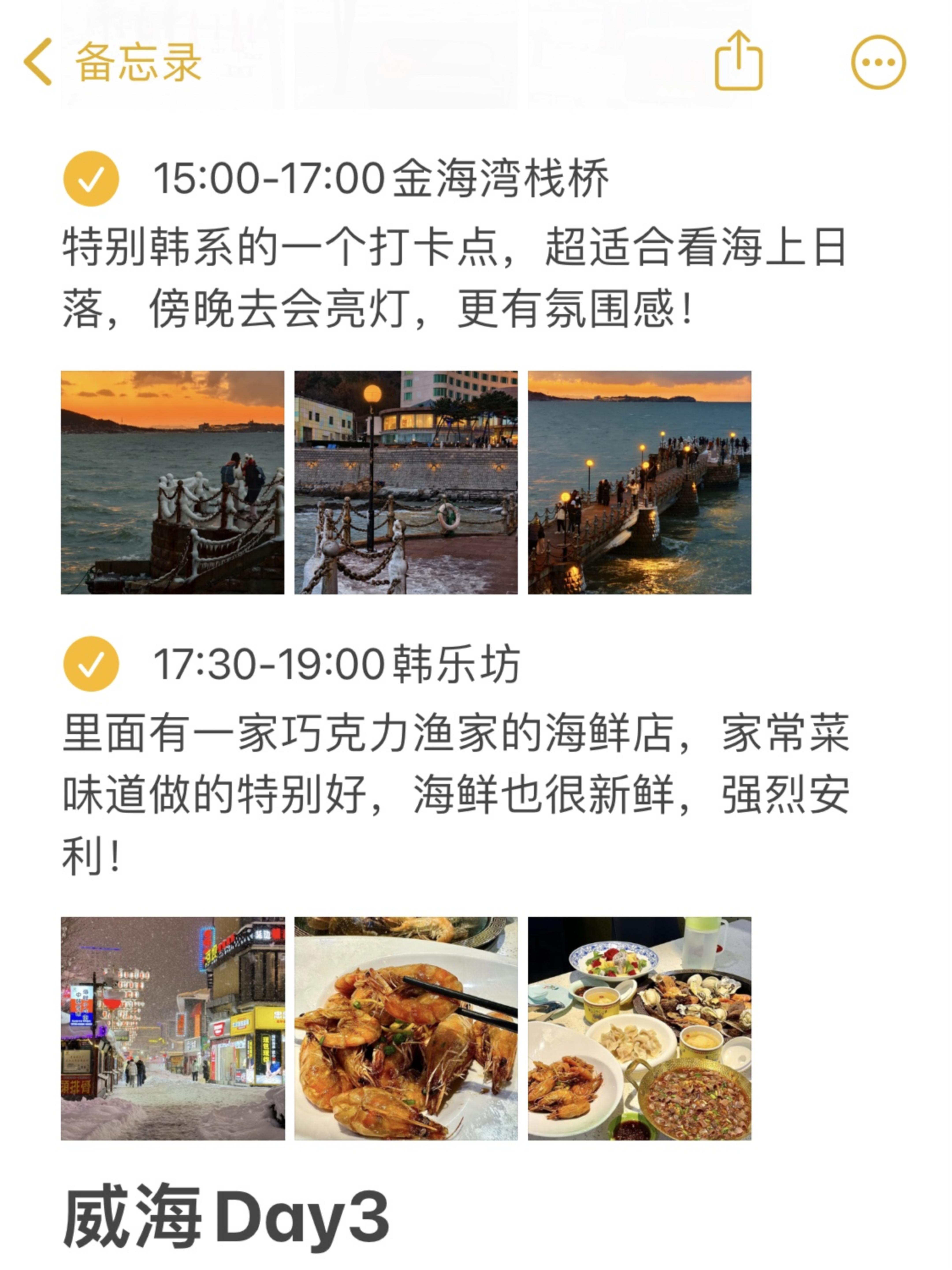 🏨住宿:建议住韩乐坊附近的酒店,打车🚗十来分钟是威海站,吃饭出行都方便一点。不要住的太偏僻!