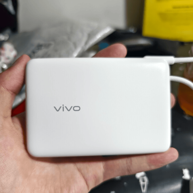 在设计上,vivo充电宝的尺寸为125mm长、73mm宽、30mm高,净重352g,拿在手里手感适中,放进包里也不会显得沉重或臃肿。最特别的是,它自带了一条25cm的质感编织快充线,接口为Type-C,设计上采用了创新的卡扣环,让线材可以轻松收纳,避免了传统充电宝线缠绕的问题,极大提升了出行的便捷性和整洁度。