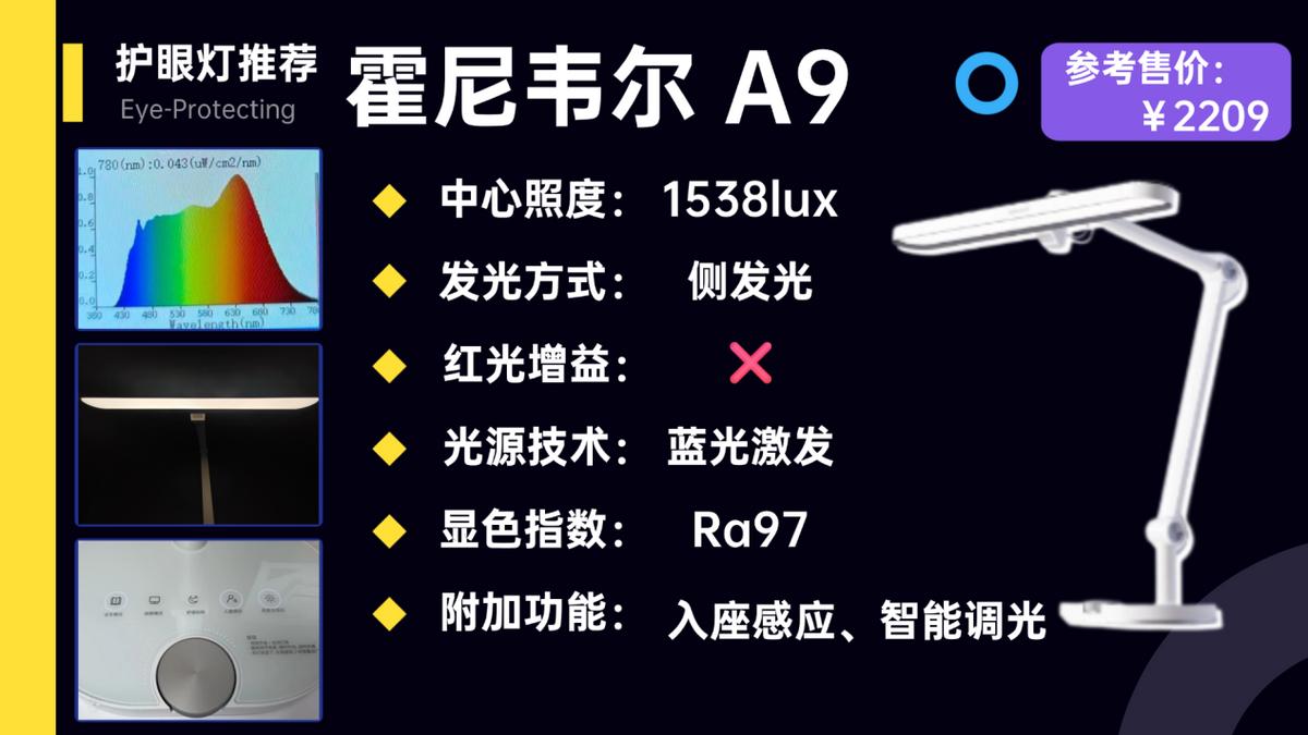 护眼灯最好的品牌排行:第三名是霍尼韦尔A9护眼台灯,灯体用的是航空铝型材,质感扎实还能很好散热,加上加重底座,调整角度时也不容易倒。照明方面是侧发光设计,配备55cm超大发光面,能覆盖120cm的桌面,大部分书桌都能铺满,中心照度1538lux,满足日常使用没问题。最突出的优势是调节灵活和照明范围广。功能上很省心,有入座感应,落座就亮,离席还会延时关灯,还有智能调光,能跟着环境光自动调整亮度。