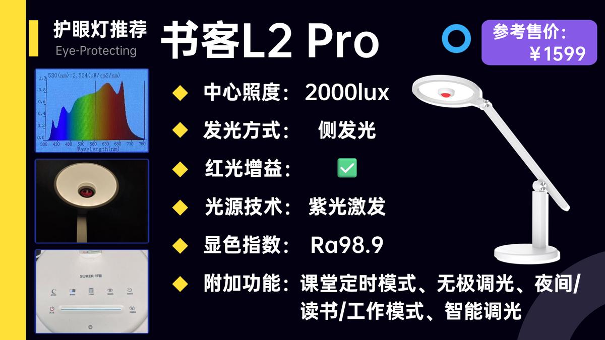 第一名是书客护眼台灯L2 Pro,参考售价为1599元