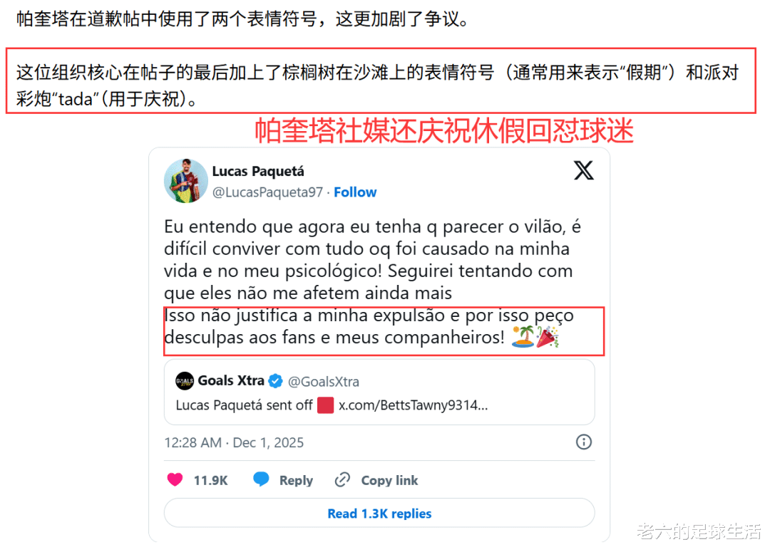 这一点也引起了队友和球迷们的不满指责他故意索要罚牌想休假,他本人在自己的社媒上还直接发出庆祝休假的emoji。