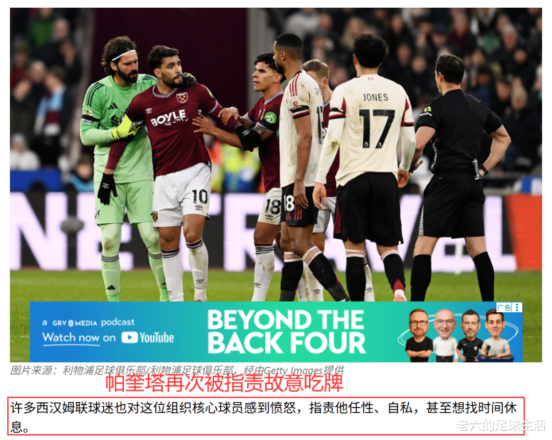 西汉姆联这边帕奎塔在上场与利物浦的比赛最后10分钟与裁判发生冲突被罚下场,他刚刚累计5张黄牌禁赛重返球队再次被禁赛。