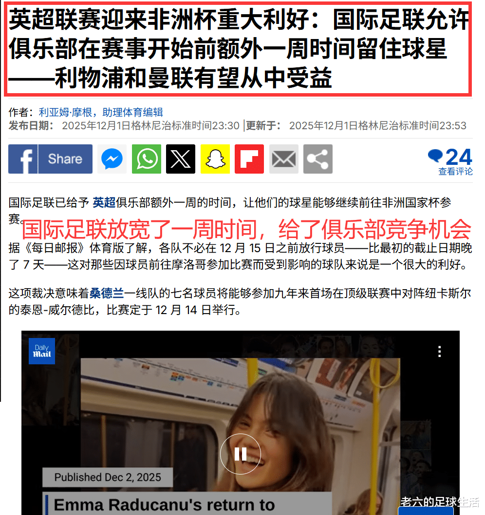 现在曼联还有一个好消息,就是国际足联给了英超的球队额外一周的时间,让他们不用提前2周释放球员到国家队训练,曼联接下来的三场比赛都能派出姆伯莫、马兹拉维等人。