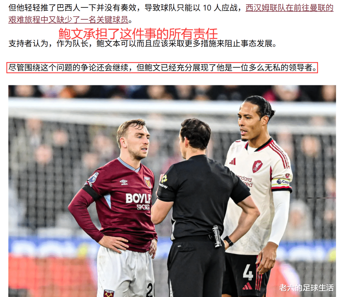 一向腼腆的队长鲍文一反常态在舆论压力下挺身而出揽下了这出闹剧的所有责任,他曾被前教练波特指责过不适宜担任队长。