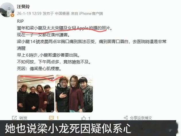 但是后来突发心肌梗塞,抢救七小时后在14日下午4时安详离世,对于这个说法,媒体人汪曼玲也证实属实。