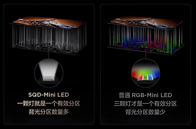 而SQD-Mini LED用技术解法,把“画质铁三角”合为一家人,同时解决控光、亮度和色域三个维度,就完美呈现了好画质。