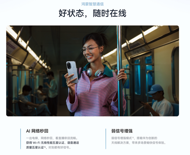 地铁信号不稳,微信消息常延迟?鸿蒙智慧通信功能通过AI弱网秒回和弱信号增强技术优化网络,弱网环境也能消息秒回。不用担心错过重要工作通知,或让等回复的朋友焦虑。