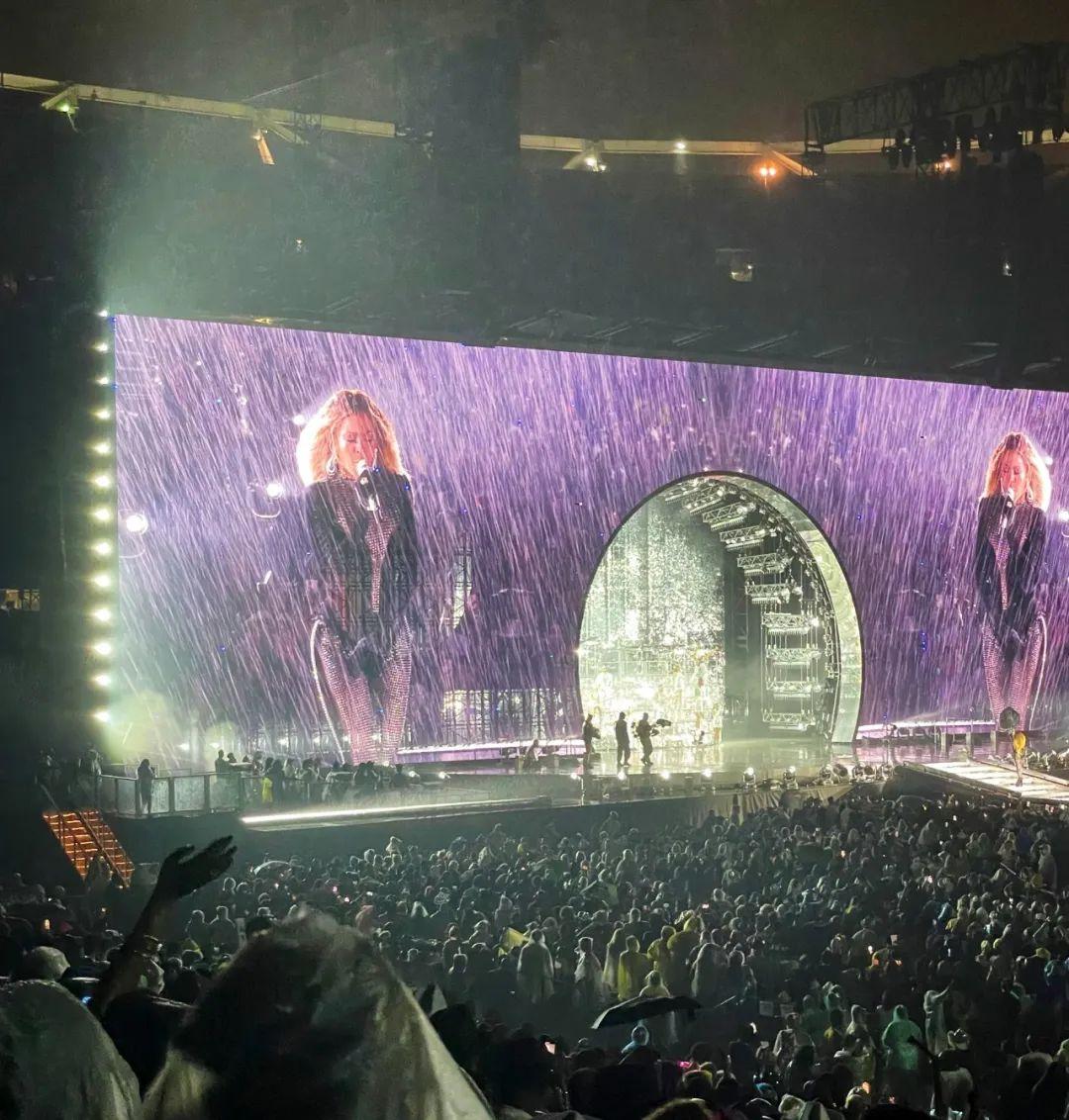 最近,41岁的美国歌手碧昂丝 Beyoncé Giselle Knowles-Carter(碧昂丝·吉赛尔·诺尔斯-卡特)举办了自己的文艺复兴世界巡回演唱会 RENAISSANCE WORLD TOUR。 而 RENAISSANCE WORLD TOUR 在美国马里兰州兰德欧弗联邦快递体育场 FedEx Field 的演唱会遭遇了超级大暴雨,甚至惊动了当地的媒体和新闻频道。 虽然为了让观众安全地欣赏演出,导致演唱会推迟了两个小时。但 Beyoncé 依然最终决定上台表演,不让粉丝白跑一趟! 虽然 Beyoncé 以后也不打算生了,但是还是要养好自己,防止着凉。