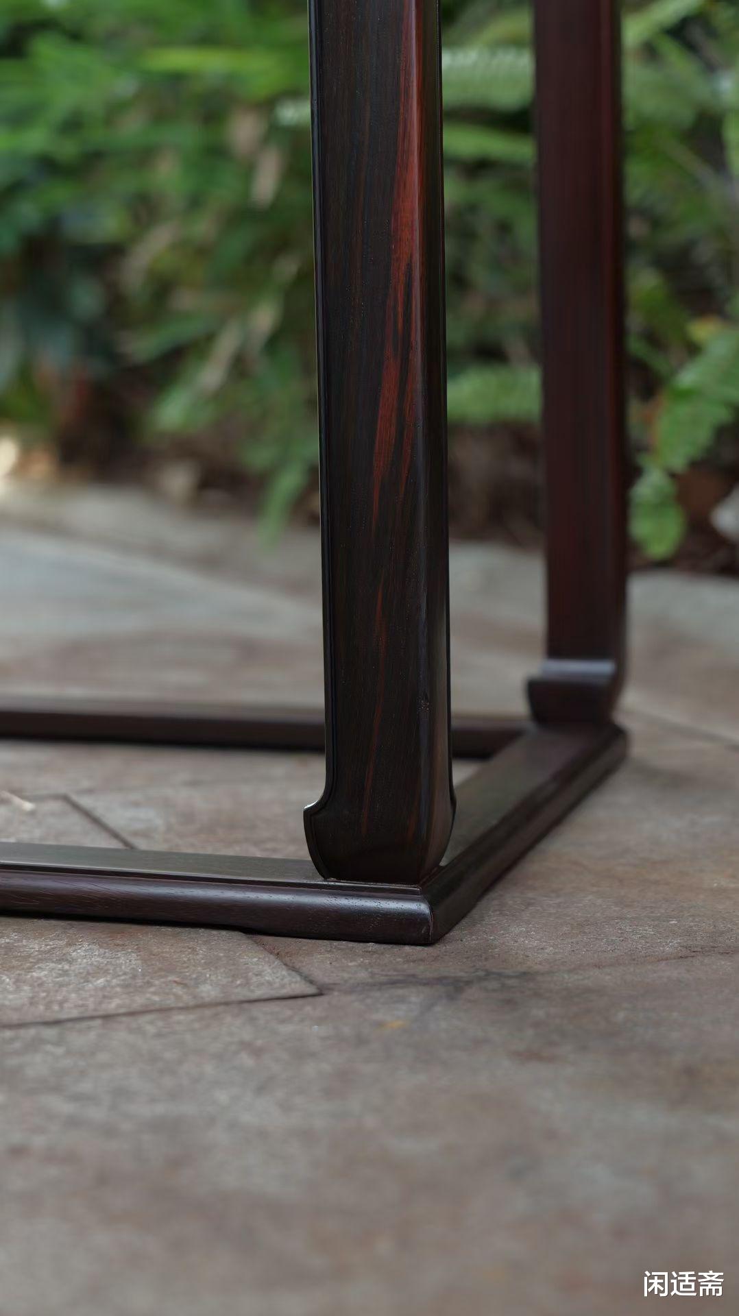 腿足采用经典苏式马蹄造型,自束腰下方顺势而下,足部微向外撇后内翻收势,线条饱满流畅,打破了方正形制的沉闷,尽显灵动生机。托泥彰显明式家具“结构即美学”的精髓,与四足通过抱肩榫精准衔接,形成稳固的底部支撑,既避免了腿足直接接触地面受潮变形,又让整器比例更显高挑协调。托泥边缘与几面冰盘沿呼应,同样做圆润处理,与马蹄足搭配相得益彰。
