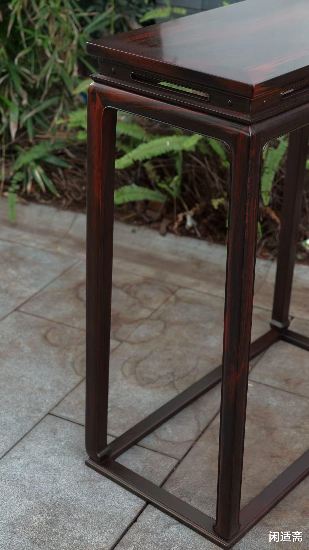 此香几可置于书斋案旁,几面陈铜炉、置香盒,与笔墨书香交融,瞬间营造“静中生思”的雅致氛围;安放于茶室角落,可承托盆景、青瓷,大红酸枝的沉褐与草木的鲜绿相映,为品茗时光添几分古意;陈列于厅堂,又能作为陈设台摆放奇石、雅玩,成为空间中的视觉焦点,是不可多得中式古典家具。