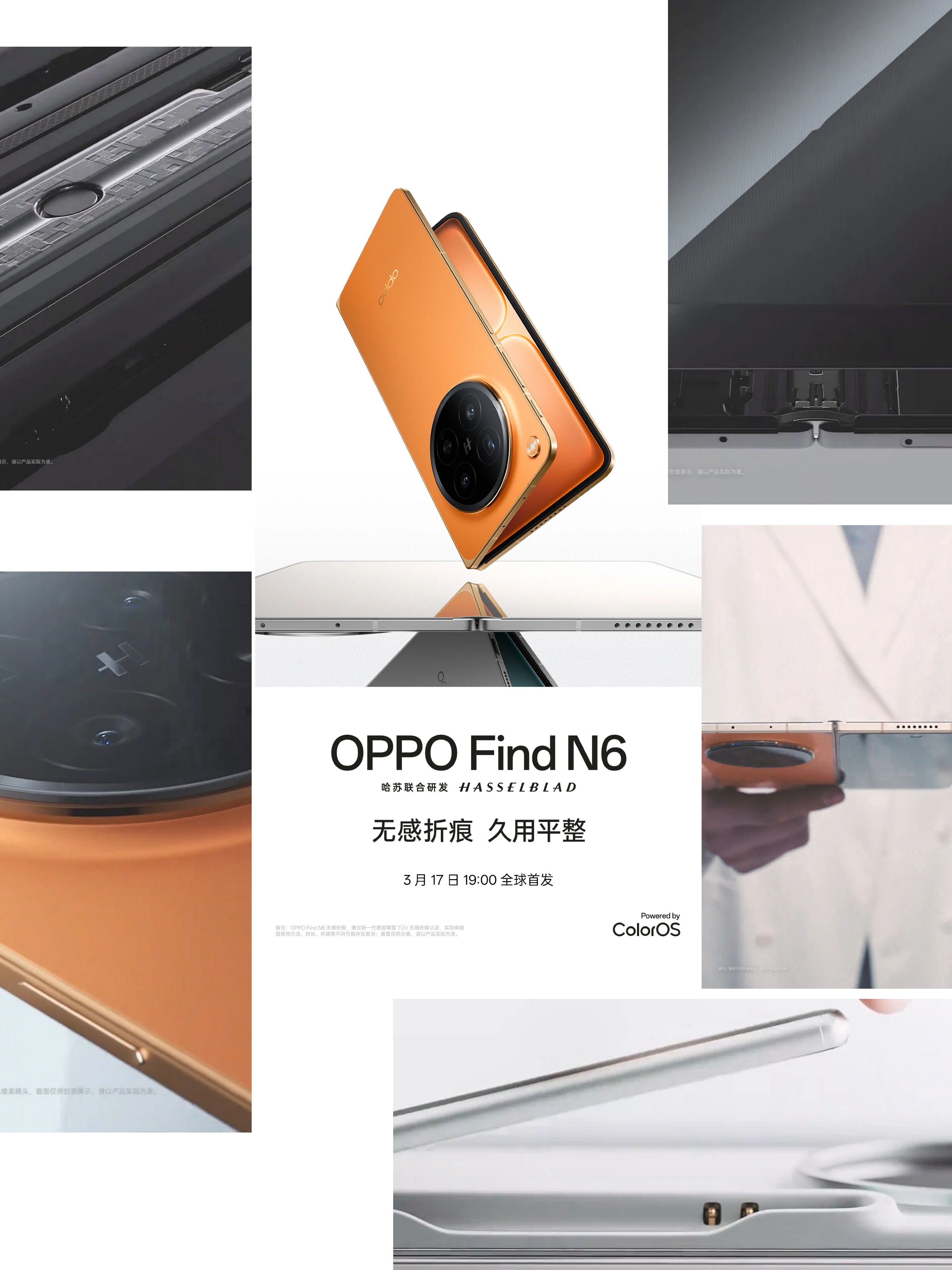 加上「金橙」、「原钛」、「深黑」三款高质感配色、哈苏2亿超清四摄、依旧轻薄的机身,感觉OPPO Find N6确实就像刘作虎所说的,“真正拥有了创造力”!至于价格等更多信息就等3月17号的发布会揭晓咯~