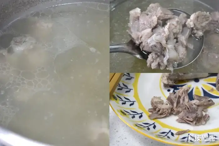 经过一番高压炖煮后,猪肉上气后继续炖煮15分钟即可,开锅后骨头与肉轻松分离。