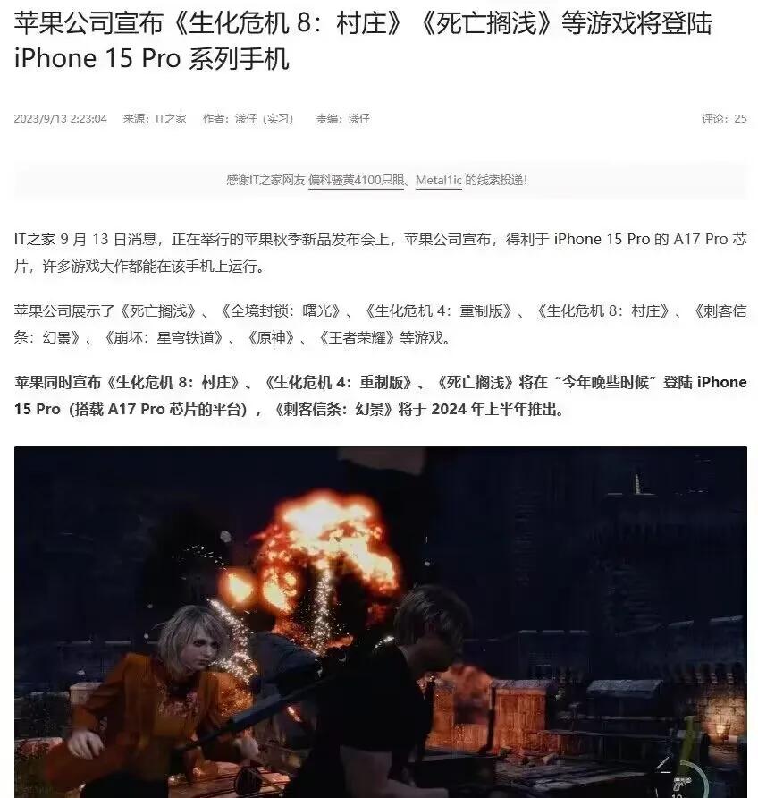 苹果iPhone15太强了,世界第一依旧是世界第一! iPhone15的A17芯片太强了,居然可以在手机那么小的设备上玩电脑上的3A级端游,例如《死亡搁浅》,《生化危机》,《刺客信条》这些游戏都能玩。 只能说世界第一依旧是世界第一,苹果又又又又...又一次改变了世界。 不过小航母作为一个游戏博主,数码也略懂一二。iPhone的A17芯片固然很强,但是苹果那个电池差点意思emmmm....这些3A级端游在苹果手机上大概率画质帧数都会缩水,而且估计续航不行,玩不了几个小时。 但是能不能确实是明显的分界线,苹果能,别的手机不能,苹果就是世界第一! #游戏# #iPhone# #一起来聊数码# #畅聊数码新产品# #iPhone15#