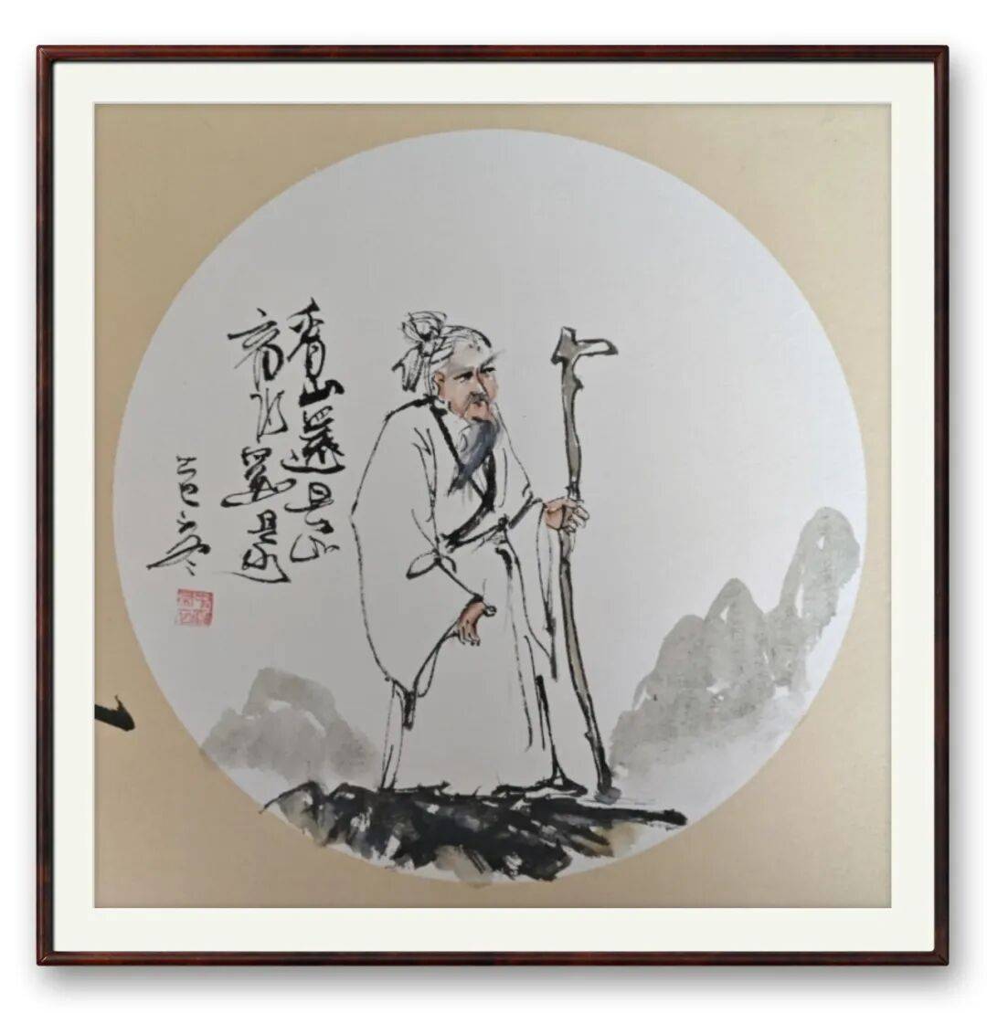 笔墨为骨,情怀为魂,魏彦刚的人物画始终坚守着传统书画的审美内核。他的线条不趋时风,不追怪诞,恪守“骨法用笔”的古训,每一笔都有起承转合,力透纸背,尽显笔墨的韧性与力量。墨法上,善于在干湿浓淡的变化中营造层次感,人物的肌肤、衣料、背景的山水草木,皆以不同墨法区分,既保证了画面的丰富性,又不失整体的和谐。难能可贵的是,他的笔墨始终为人物精神服务,不为技法而技法,让线条与墨色成为人物心性、文化内涵的载体,这正是传统人物画“以形写神”的精髓所在。