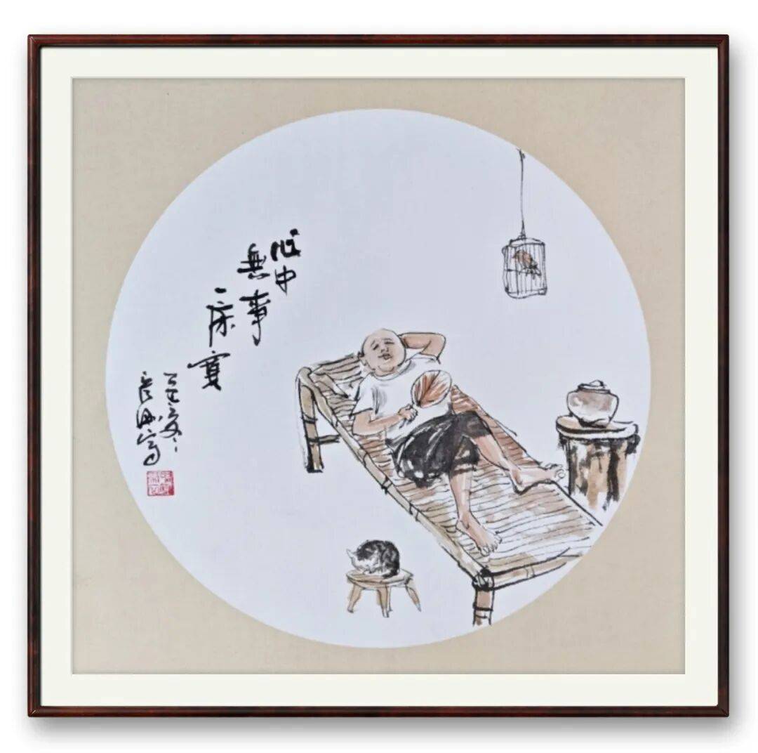 民韵藏锋,为其作品注入了鲜活的生命温度。作为河南本土艺术家,魏彦刚深植中原文化土壤,将民间审美中的质朴与厚重融入创作。他的人物画里,既有文人画的雅致,亦有民间艺术的烟火气,打破了传统文人画与民间绘画的壁垒。笔下寻常人物,或田埂劳作,或市井闲谈,衣褶线条带着民间剪纸的利落,面部刻画兼具写实与写意,不追求工细却神髓具足。墨色的运用上,多吸纳中原民间绘画的浓烈与醇厚,却又以文人笔墨加以调和,使人物既有乡土的亲切,又不失艺术的格调。这种融合,让他的作品摆脱了文人画的孤高,更接地气,也让民间审美在笔墨艺术中获得了更高层次的表达。