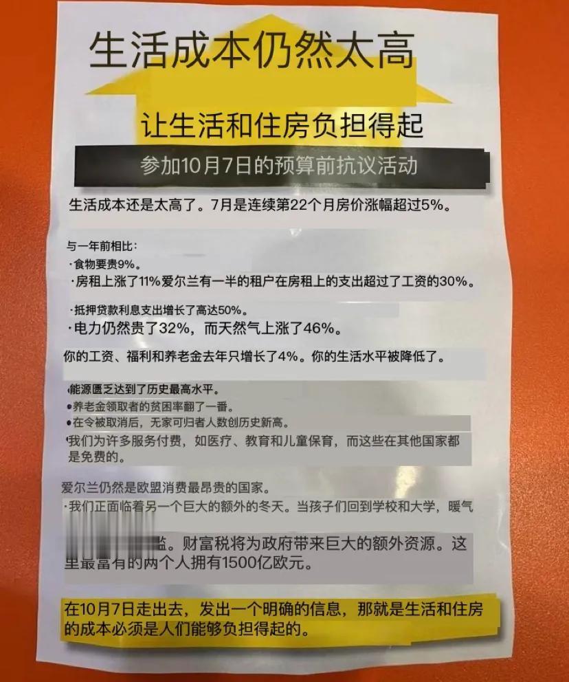 爱尔兰人又要上街了!因为物价太贵!