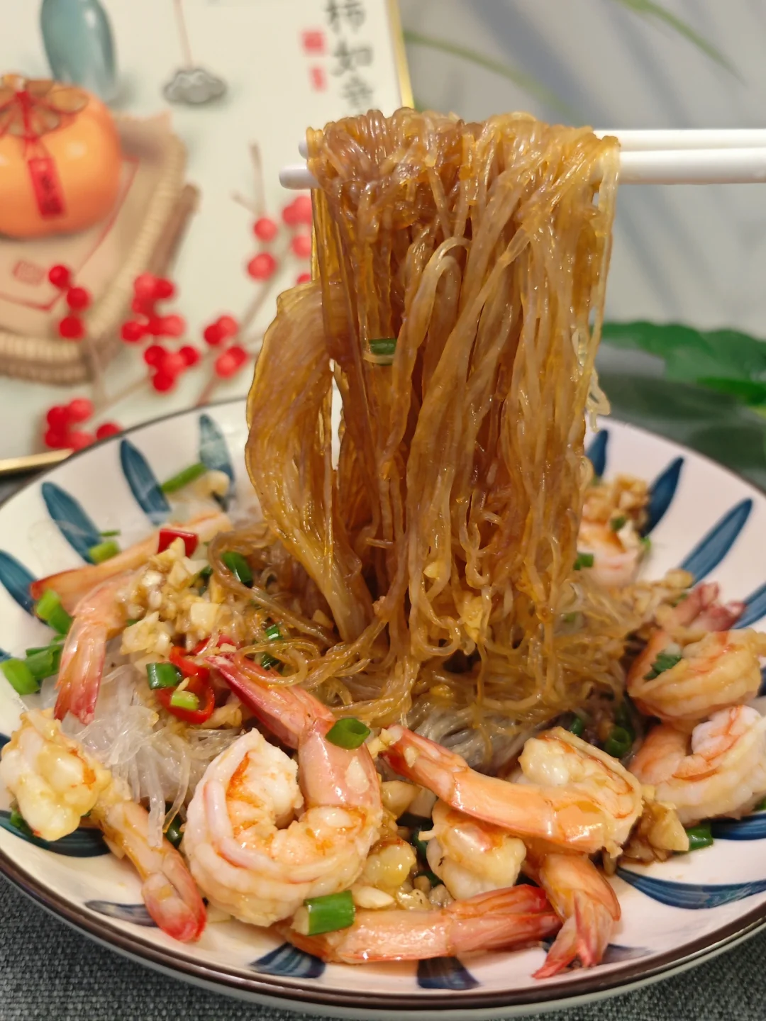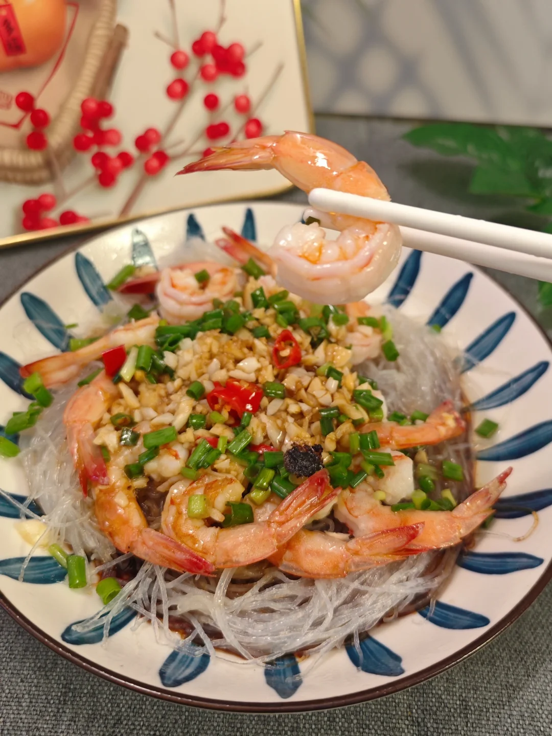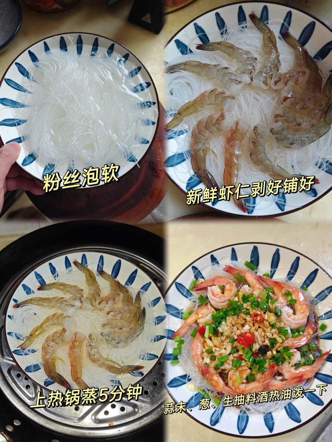 🦐每天上下班很累,自己做饭的话,真的想要一个简单菜谱,这个蒜蓉粉丝虾就是一道缩减后的简易版! · ✅主要食材 粉丝 活虾 蒜葱 · ✅制作步骤 1⃣️粉丝泡开,蒜切成末,葱切花 2⃣️锅虾去头去皮,铺在泡开的粉丝上。 3⃣️铺上蒜蓉,锅里热水大火蒸上五分钟,撒上葱花,蒸豆豉油生抽,淋上热油即可。 · 这道菜,提前把蒜蓉熬制下会更好吃,因为是简易版,活虾一定要新鲜哦