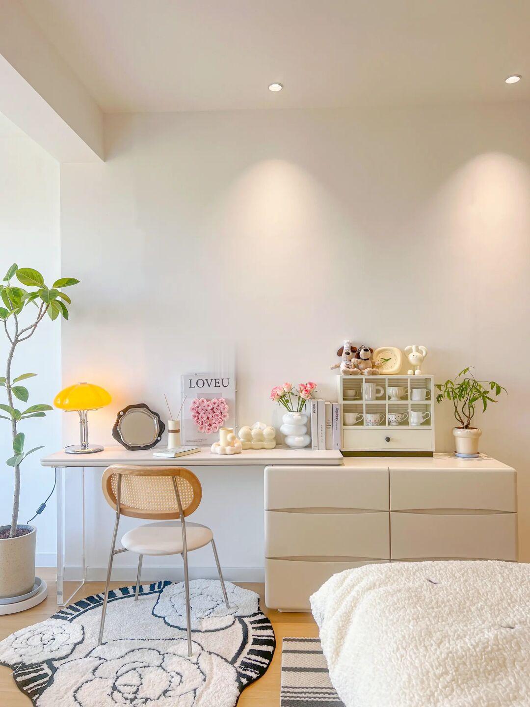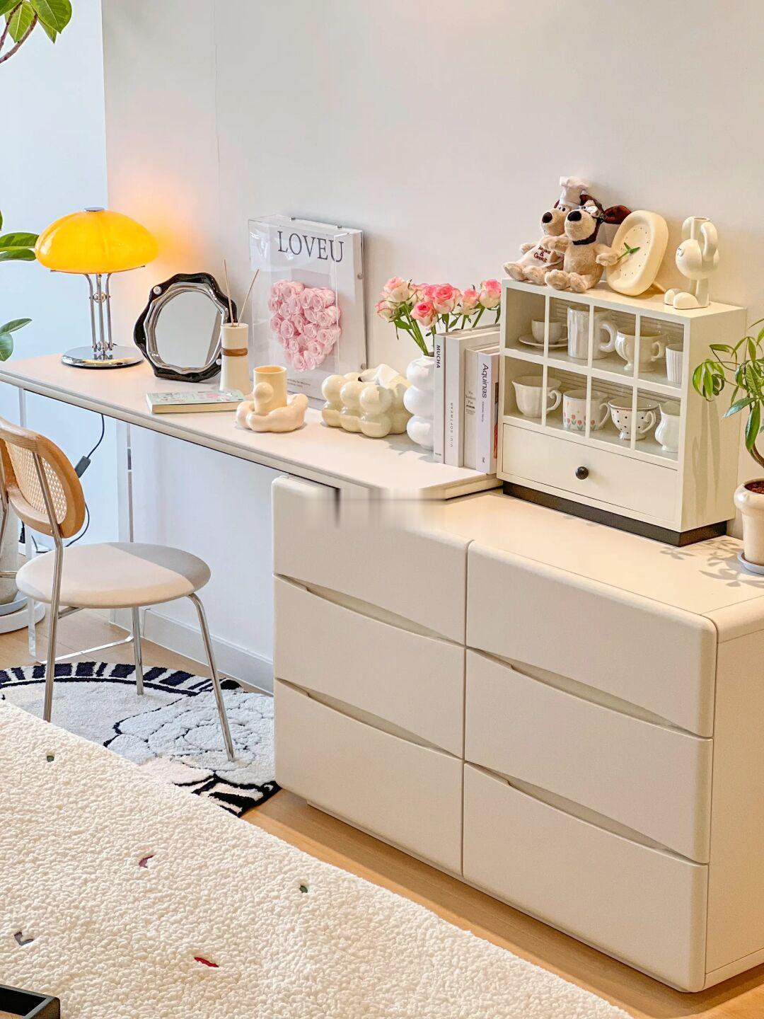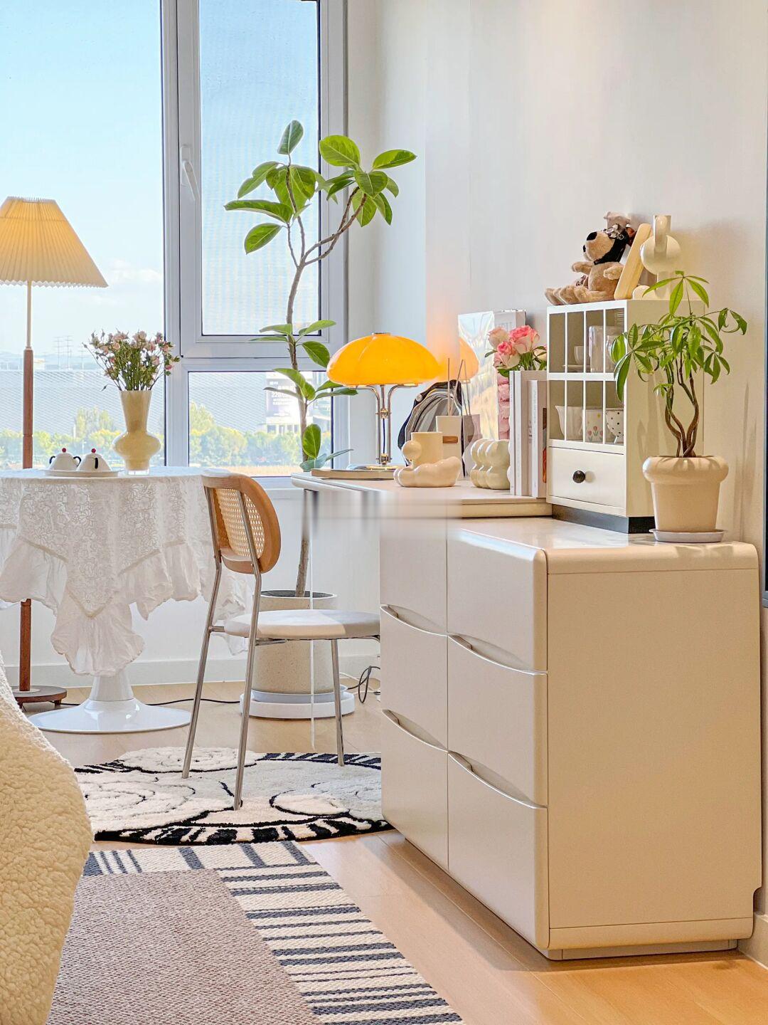 奶油白的斗柜搭配悬浮感超强的的L桌,“奶气十足”,跟我的卧室风格超搭