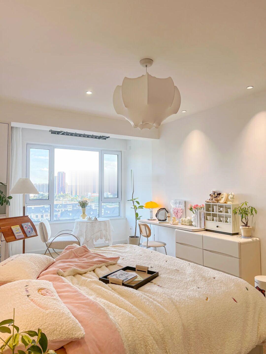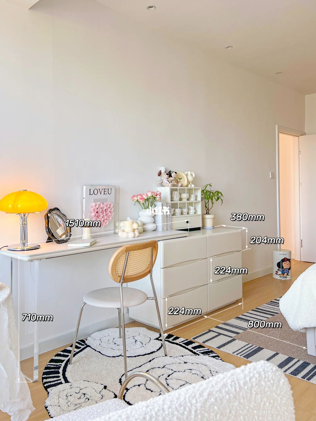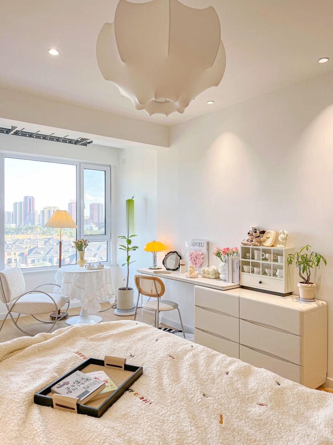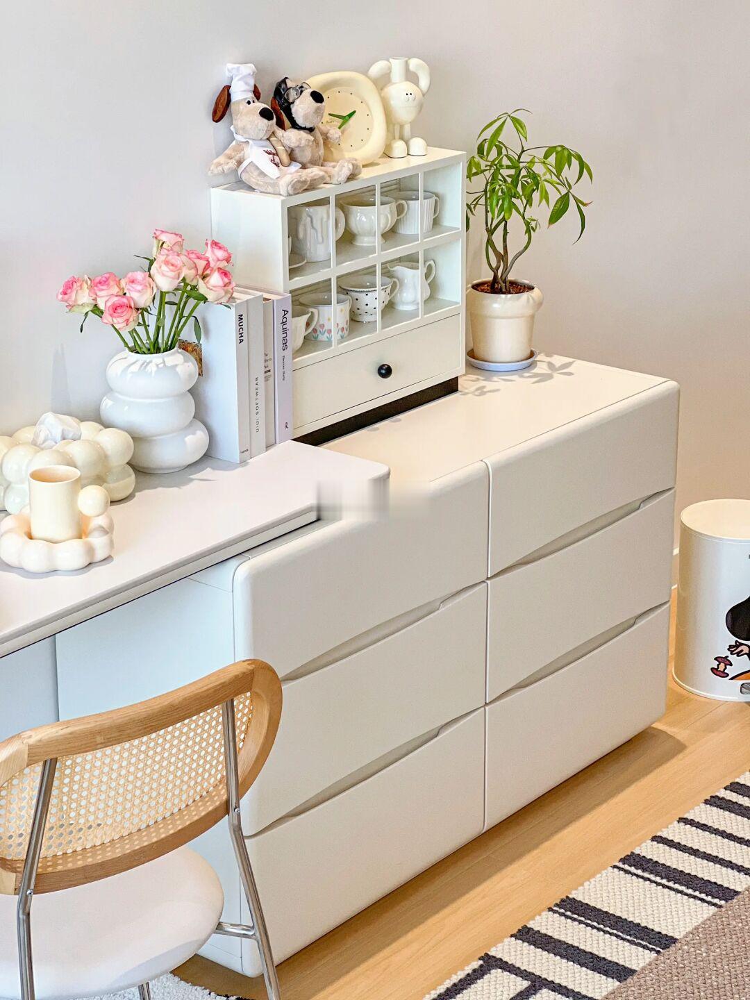 奶油白的斗柜搭配悬浮感超强的的L桌,“奶气十足”,跟我的卧室风格超搭