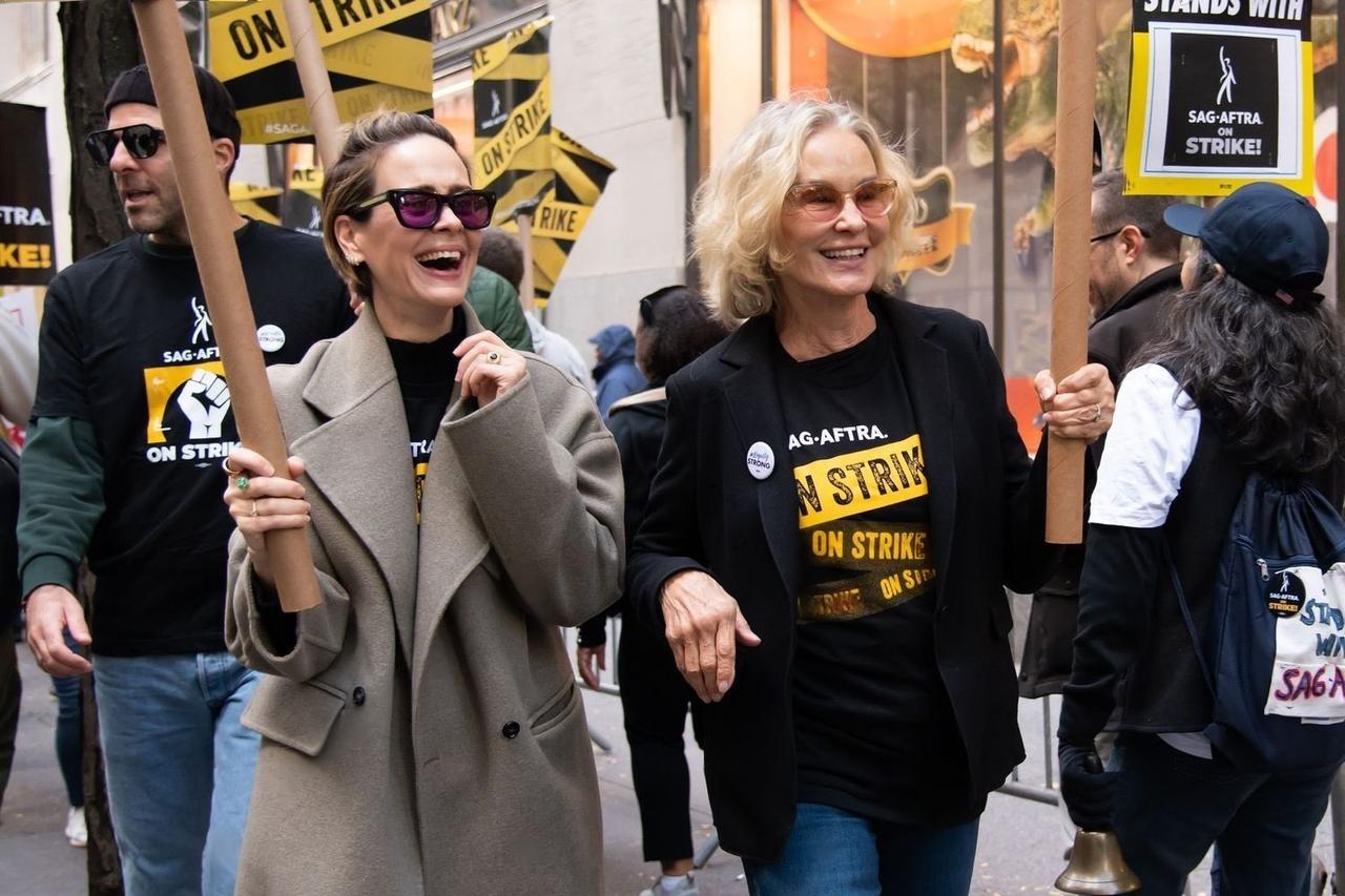 好莱坞谈判疑似失败,罢工继续进行! 今天,曾经拍摄过《美国恐怖故事》的 Jessica Lange, Sarah Paulson 以及 Zachary Quinto 上街罢工。 据说,演员和编剧工会要求加薪的诉求被否决,电影公司不同意提高工资和薪水,拒绝谈判。