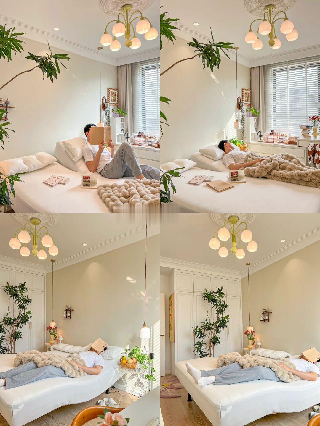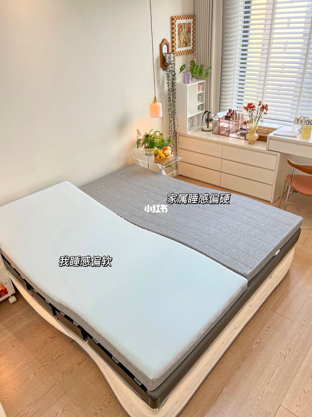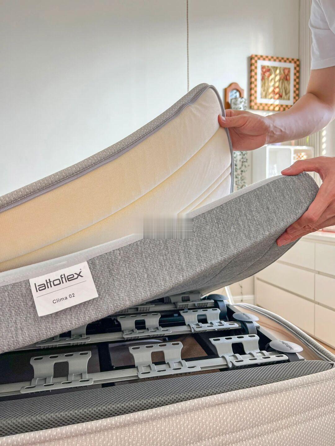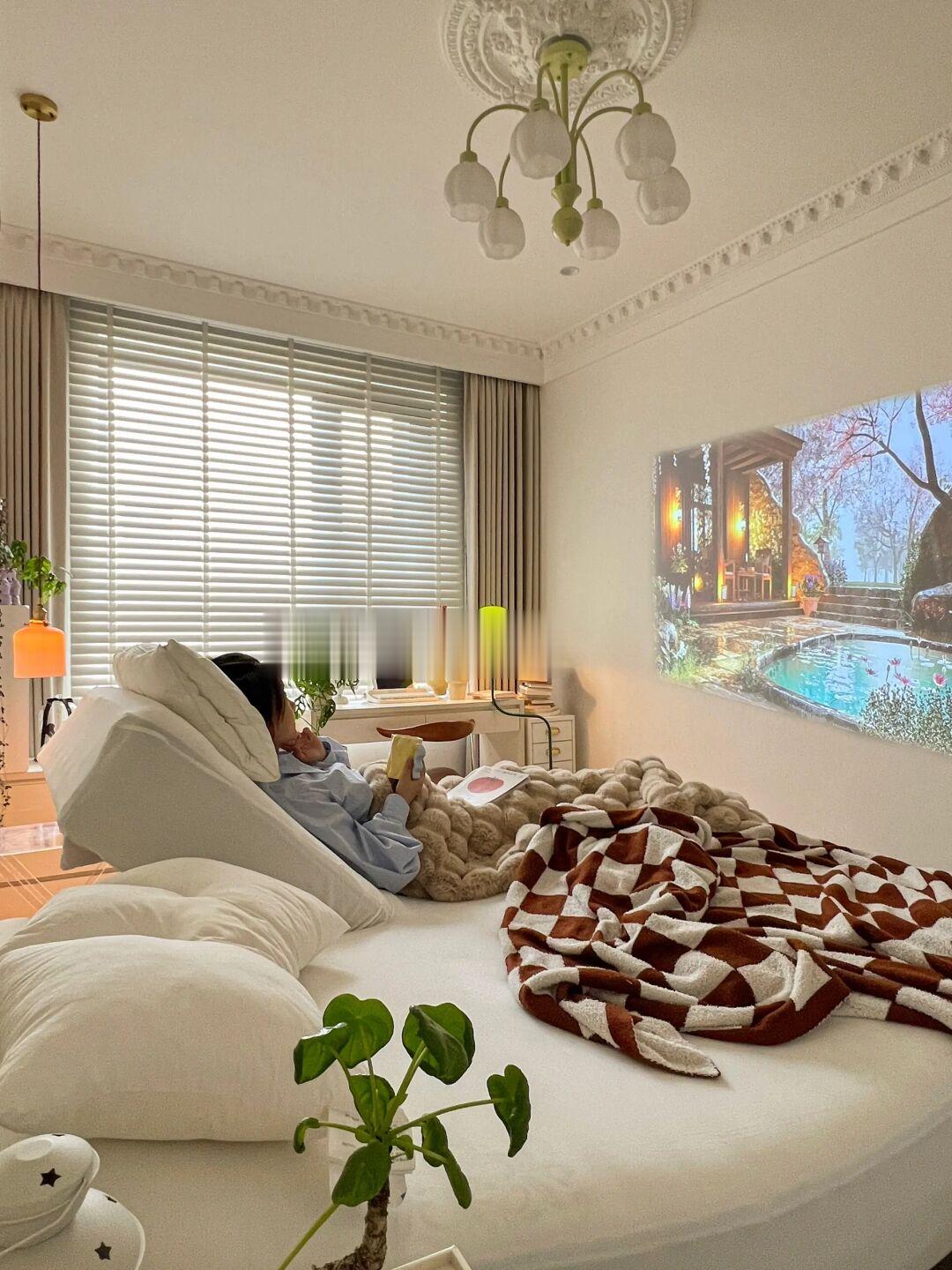 和家属是大学同班同学,毕业第二年领证,有了属于我们自己的家,还有1个多月也即将迎来自己的小baby👶🏻 上学 恋爱 毕业 买房 领证 结婚 生子… 很庆幸我们一直都在彼此的身边💕 - 🏠.关于我家 建面116平,套内93平的三居室 客餐厨一体的设计让小户型更显大 轻硬装重软装的装修理念让家变得温馨浪漫 - 🧸.关于卧室 长4.5m,宽2.7m,高2.66m 吊顶下吊10cm,四周是面宽11.37cm的虎头线 复古灯盘直径66cm 背景墙是偏冷调的奶油白,其余墙面是纯白色 地面是灰色调的多层实木地板 窗前悬挂了白色木百叶,每天阳光透过百叶留下的光影总是那么梦幻🫧 - 💤.关于睡眠 现在的我进入到了孕晚期,工作一天下来会经常腰酸腿肿,即使晚上躺在床上也是翻来覆去各种不舒服😞 家属喜欢侧躺,但总是因为睡觉时太压肩而导致早上起来肩膀酸痛😵‍💫 直到被好朋友安利了这款乐德飞翼智能床! 它的排骨架超“别致”,叶片的结构能更好贴合身体曲线,在智能模式下脊柱和背部会更舒服 他们家的护肩区设计很贴心!当家属侧卧时肩部也能被很好的包裹,再也听不到第二天被压肩的抱怨了~ 而且它还能左右分区抬升,看电影时我会把头部抬升45度,而家属习惯低一点的角度。左右分区的设计同时还能通过调整两端加塞定制床垫软硬度,一张床垫满足我和家属不同的软硬度需求~ 睡觉时,我会打开零压模式,尤其是腿部抬高,感受到血液回流带来的轻松。如果家属打鼾,我会把他那一侧抬升15度,这样呼吸就顺畅啦 床垫采用了欧盟标准生产的凝胶记忆棉,回弹透气。床垫外层的拉链设计,不仅干净卫生,而且方便拆洗 充足的睡眠使我们精神饱满精力充沛 好的睡眠,美的享受,愿你睡眠美悦🌛💤