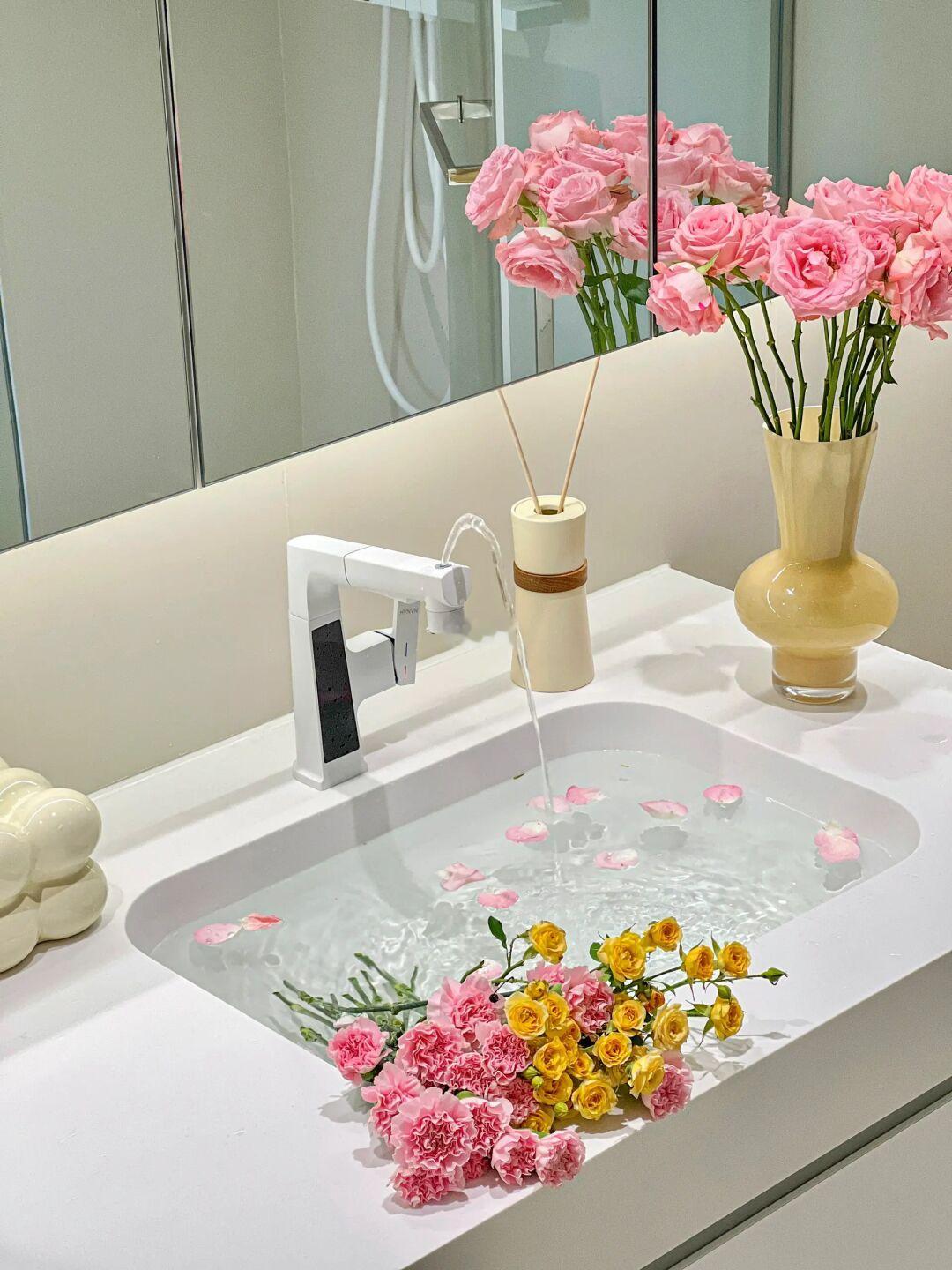 十月末的气温骤然下降 距离休产假的日子也越来越近 这是搬进新家的第三个年头 我对它的依恋也愈发深厚 周末和家属窝在沙发里享受惬意 客厅的蝴蝶结吊灯在阳光的照耀下闪闪发光 换了一床奶fufu的玉米被 柔软又舒适 依然享受每周的醒花时刻🌸 浴室换成了白色数显的水龙头🚰 不仅可以实时显示水温,还不显水垢 让生活越来越理想,过成向往的样子 也许这就是努力挣钱的意义吧🥂