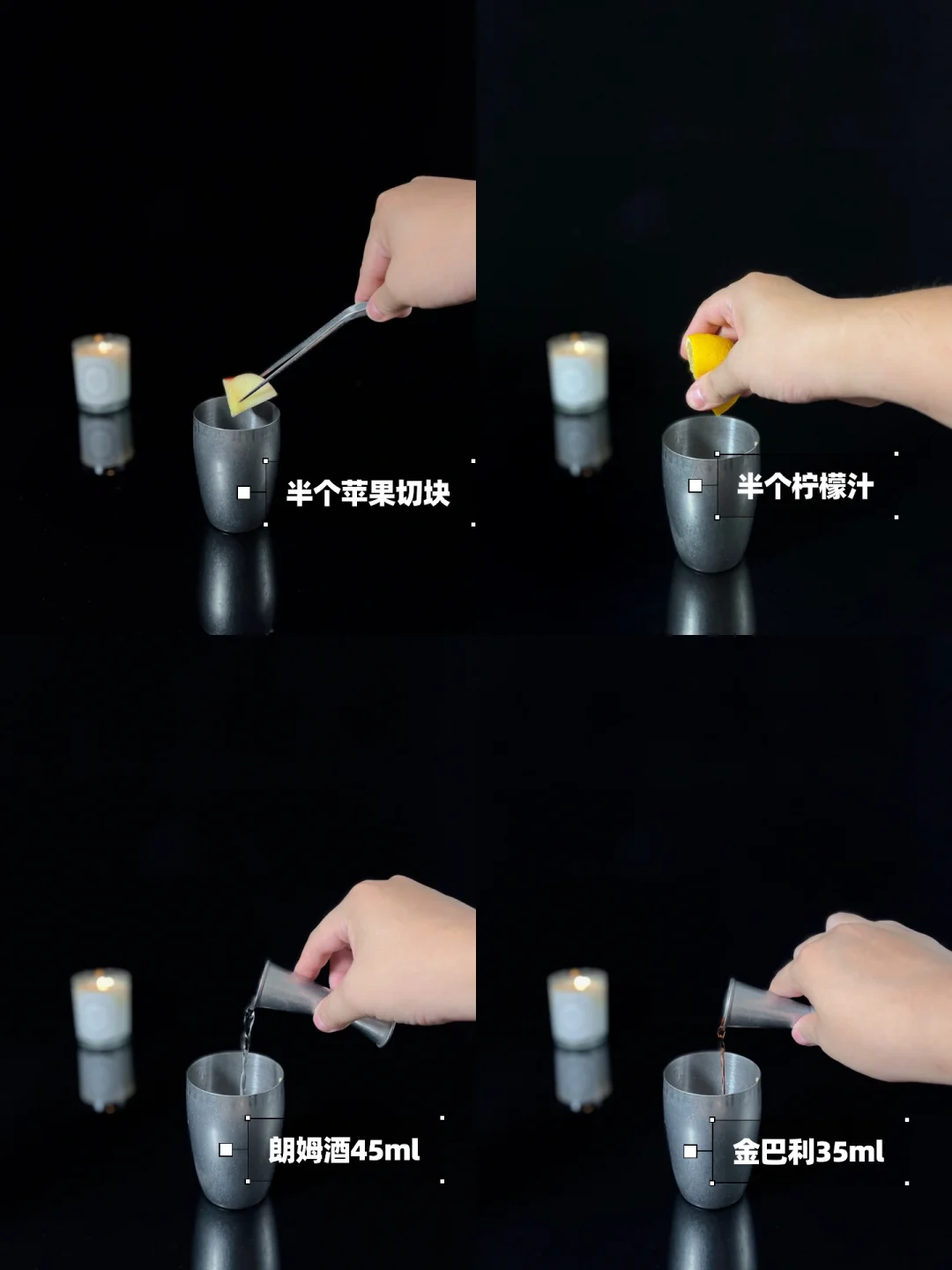 “留住”它的味道充满了层次与矛盾。朗姆酒为酒中注入了强烈而清澈的力量,而金巴利则带来了苦涩的忧伤且复杂的层次。苹果汁的甘甜与柠檬汁的酸酐相互融合,在其中起到了平衡的作用,给予了一些温暖的慰藉与希望。这款鸡尾酒带给人们的是一种复杂而深刻的感受,仿佛在品尝着求而不得的辛酸与动人。