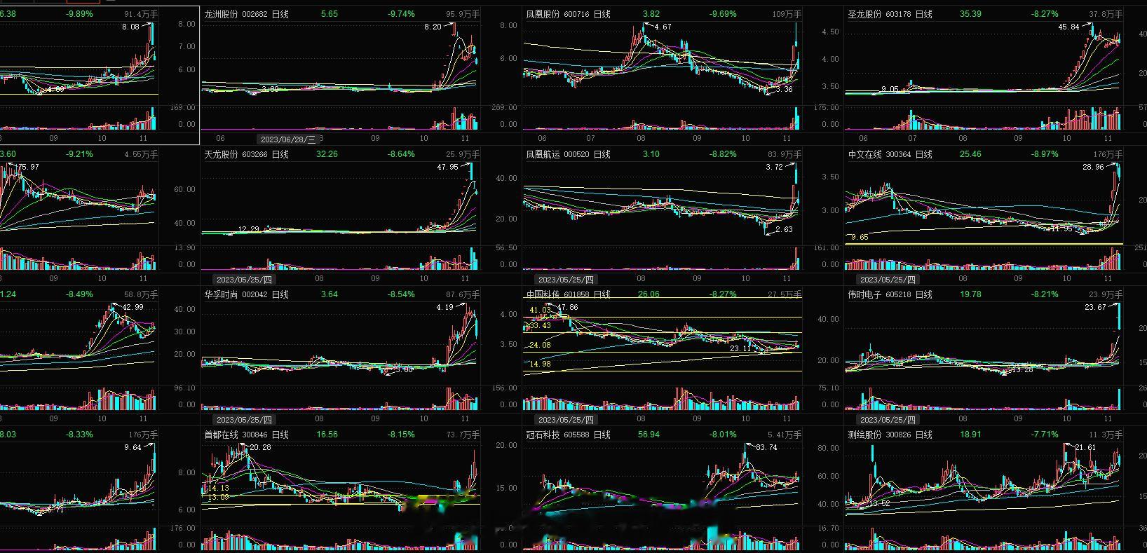跌幅榜前32的K线图,看着真的是舒服,看懂上涨很重要,看懂下跌更重要,每天你不要
